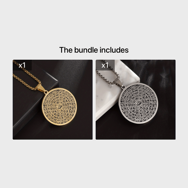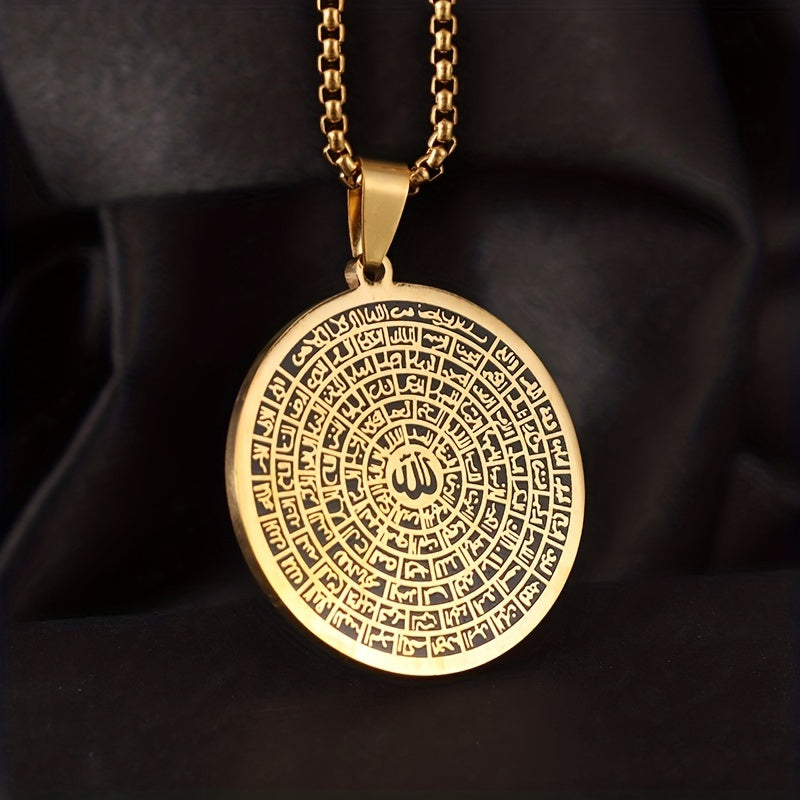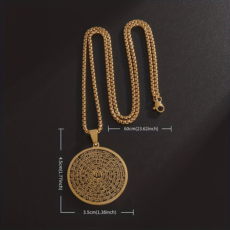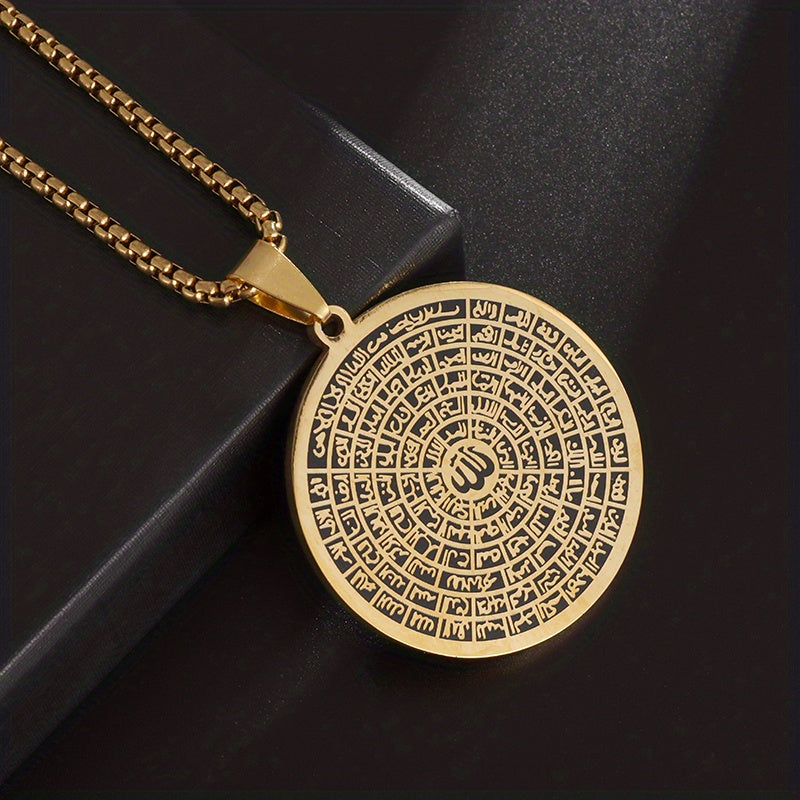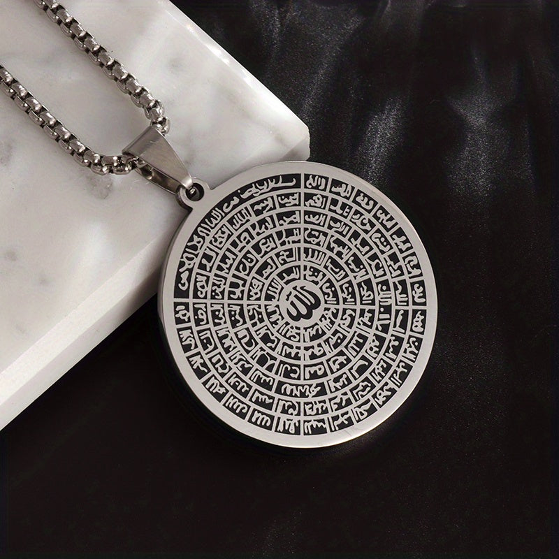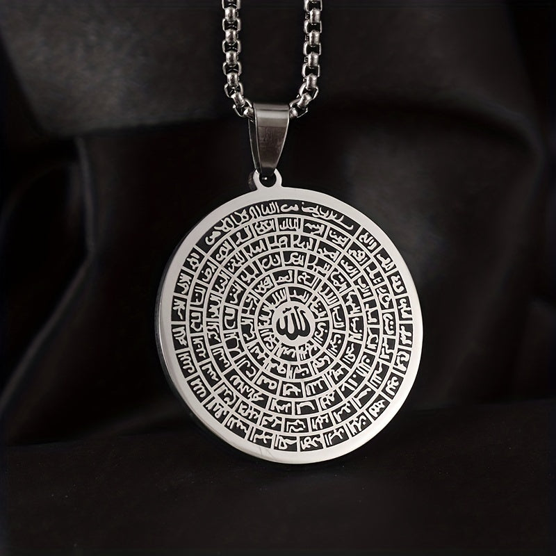 This pendant necklace features a mysterious symbol engraved on high-quality stainless steel. Perfect for men who embrace their Muslim faith with style.