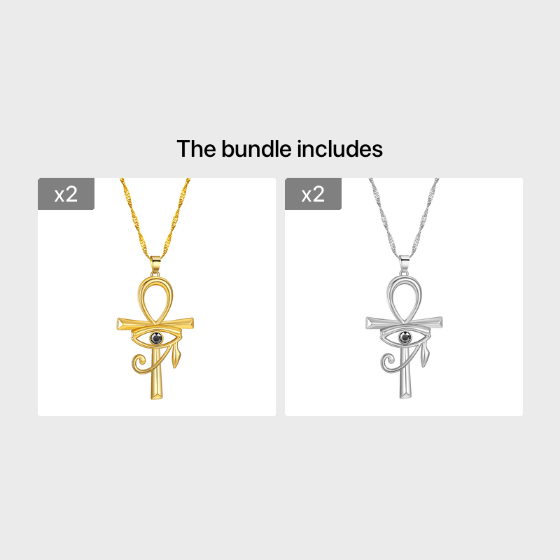 • Evil eye of Horus, Ankh cross, and key elements
