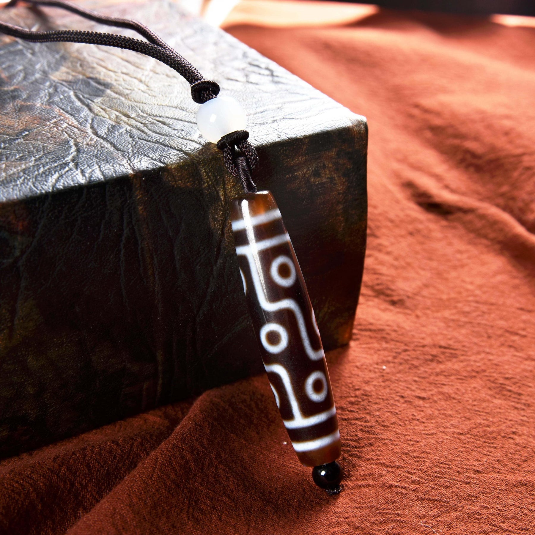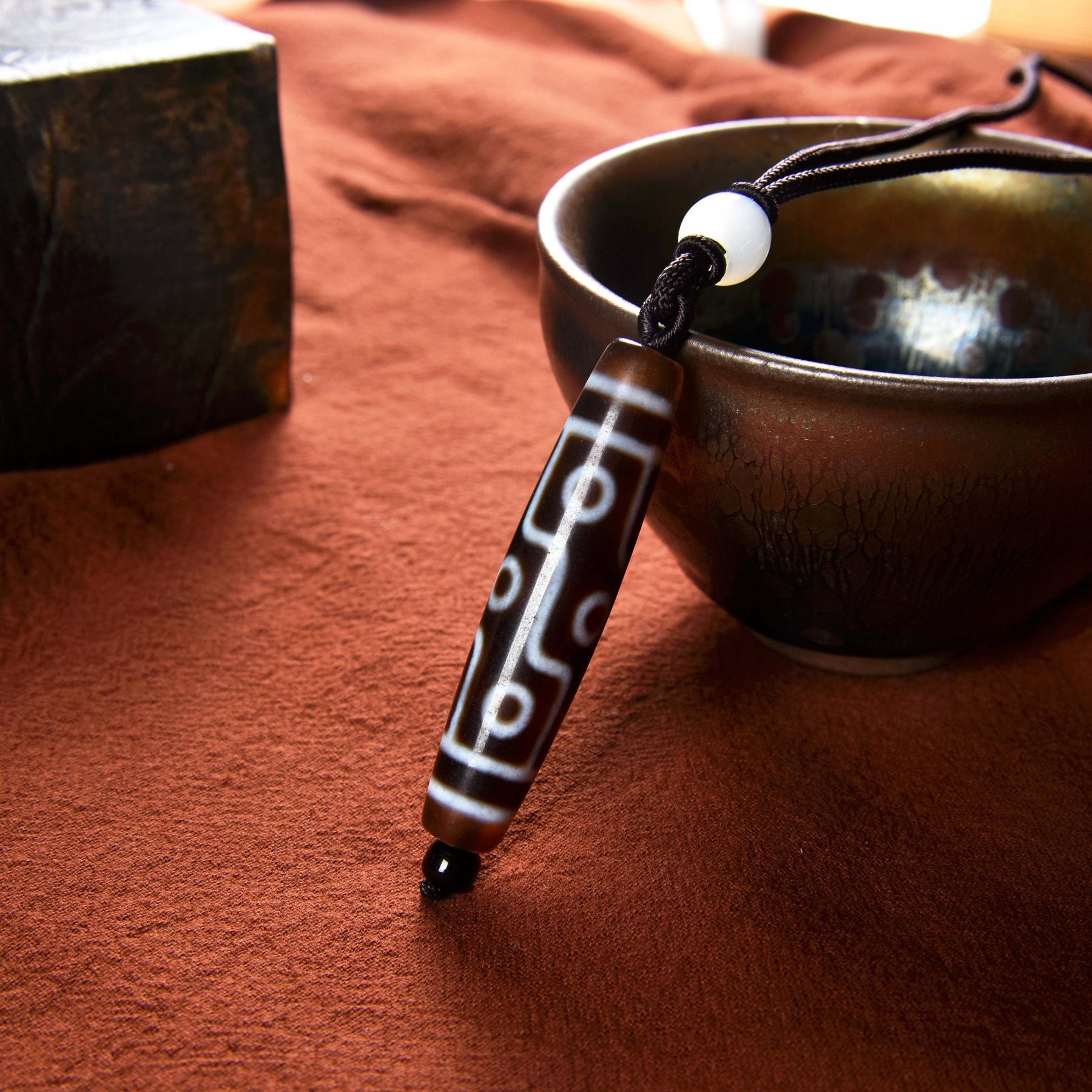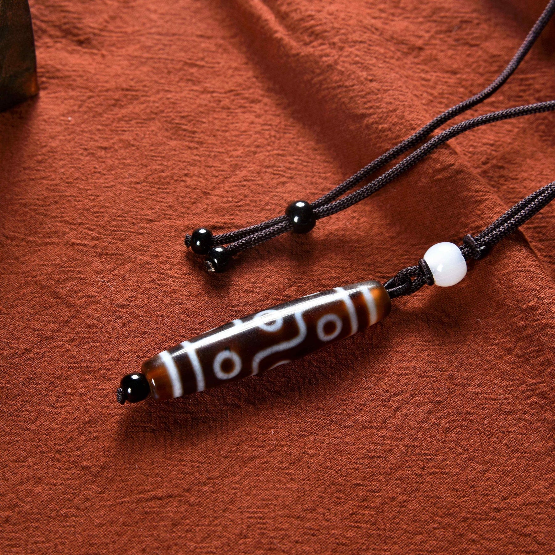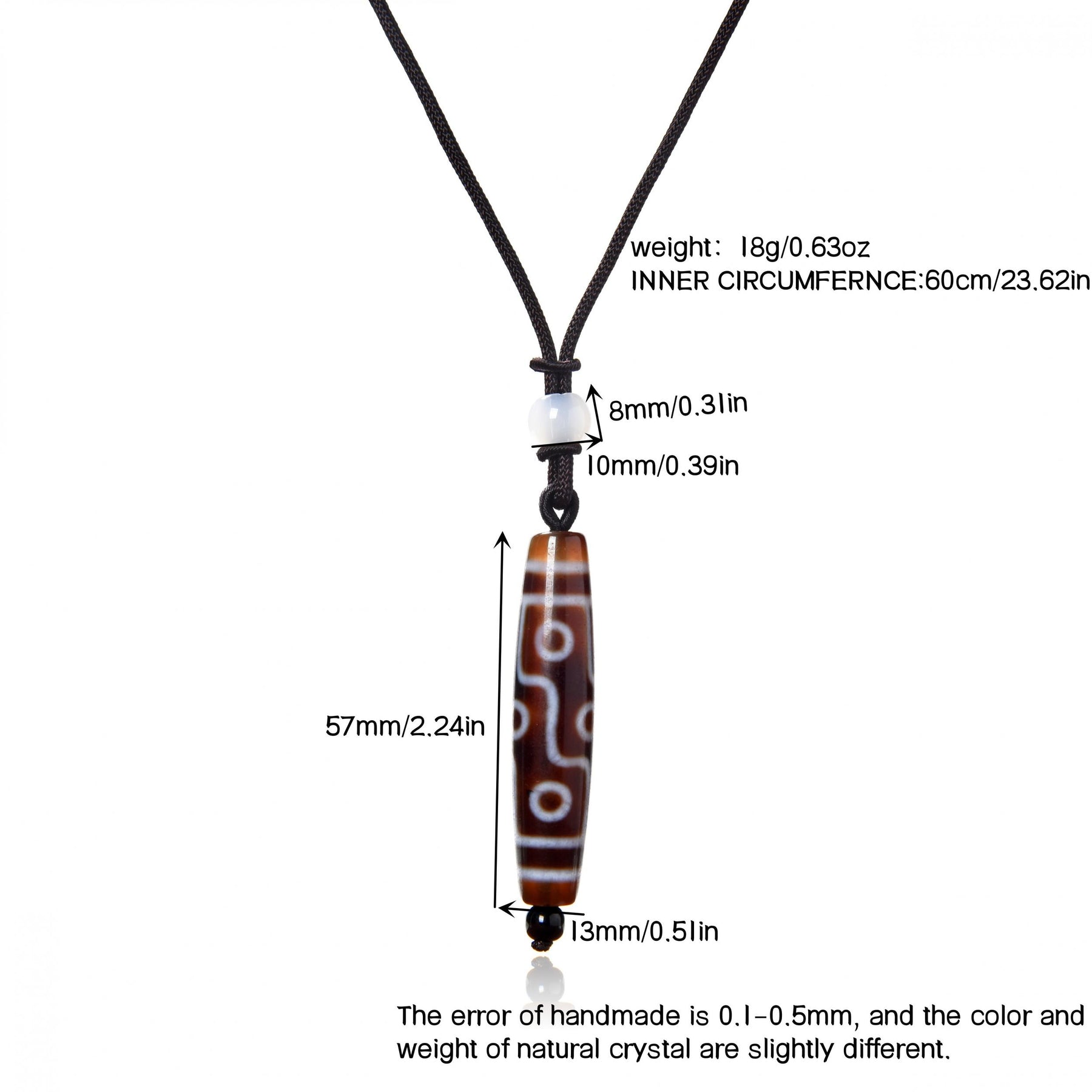 This pendant features a natural crystal nine eye Dzi bead in a bohemian retro style design, suitable for men and women.
