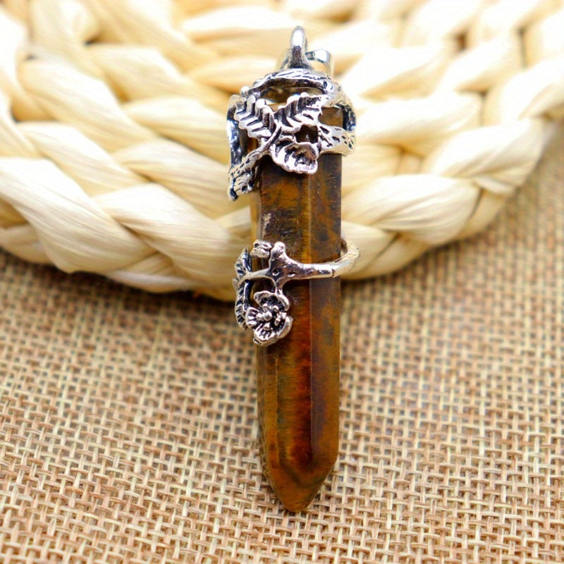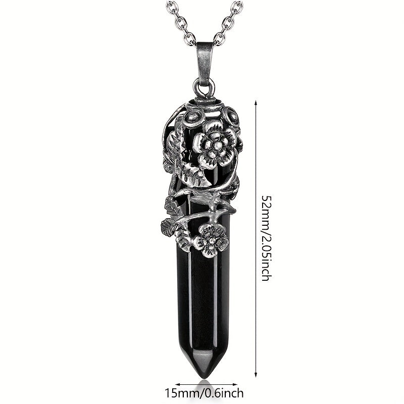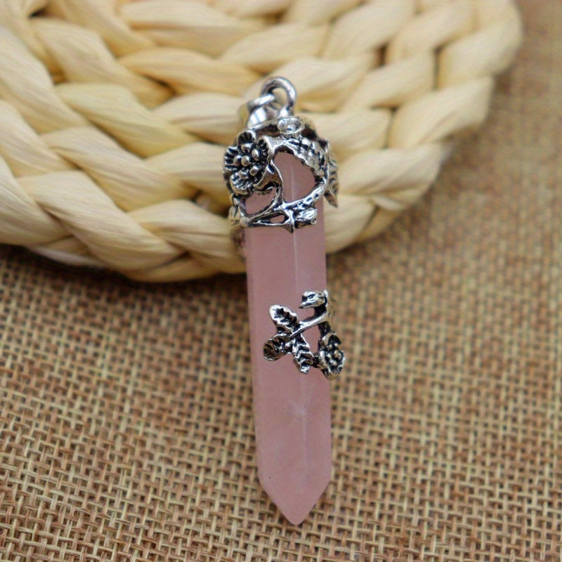 This beautiful pendulum pendant necklace features a natural flower wrapped crystal, perfect for Reiki healing and enhancing energy. The quartz stone on a link chain adds a touch of elegance.