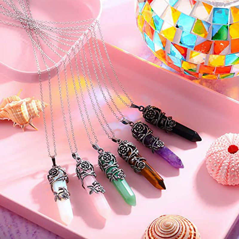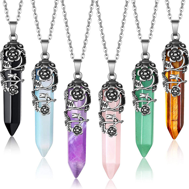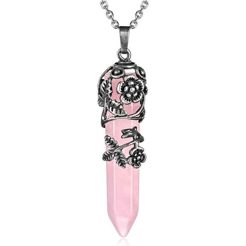 Natural Flower Wrapped Crystal Pendulum Pendant Necklace