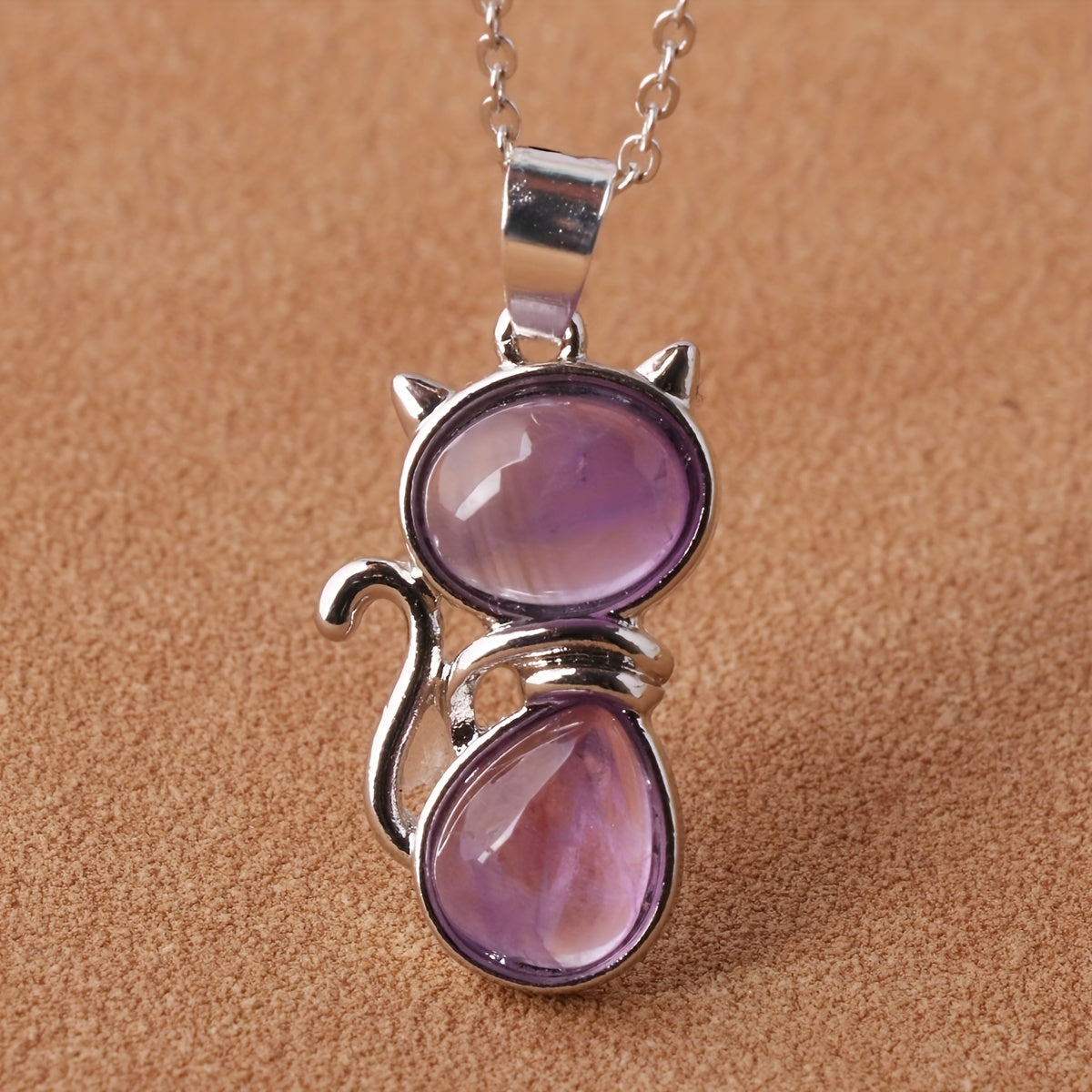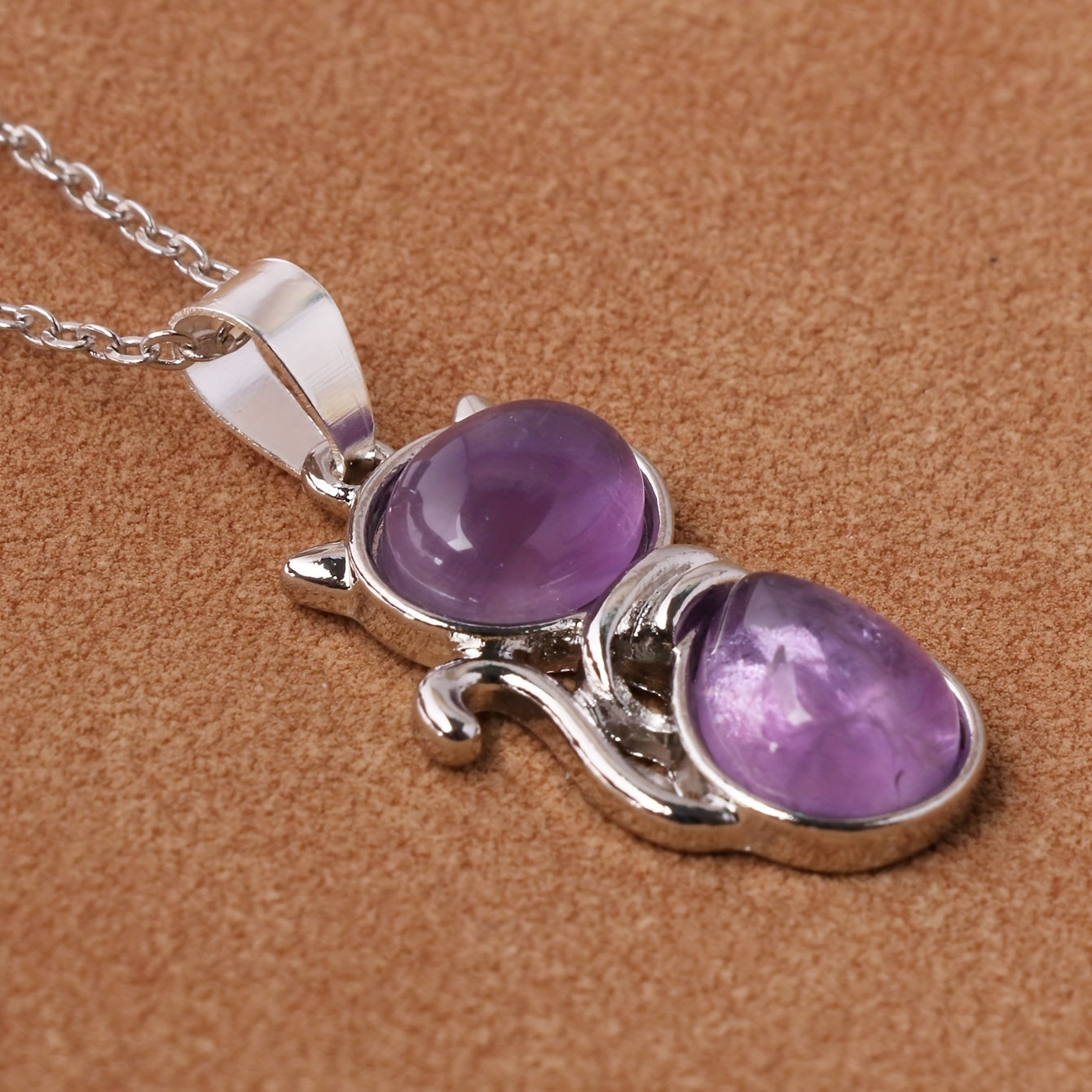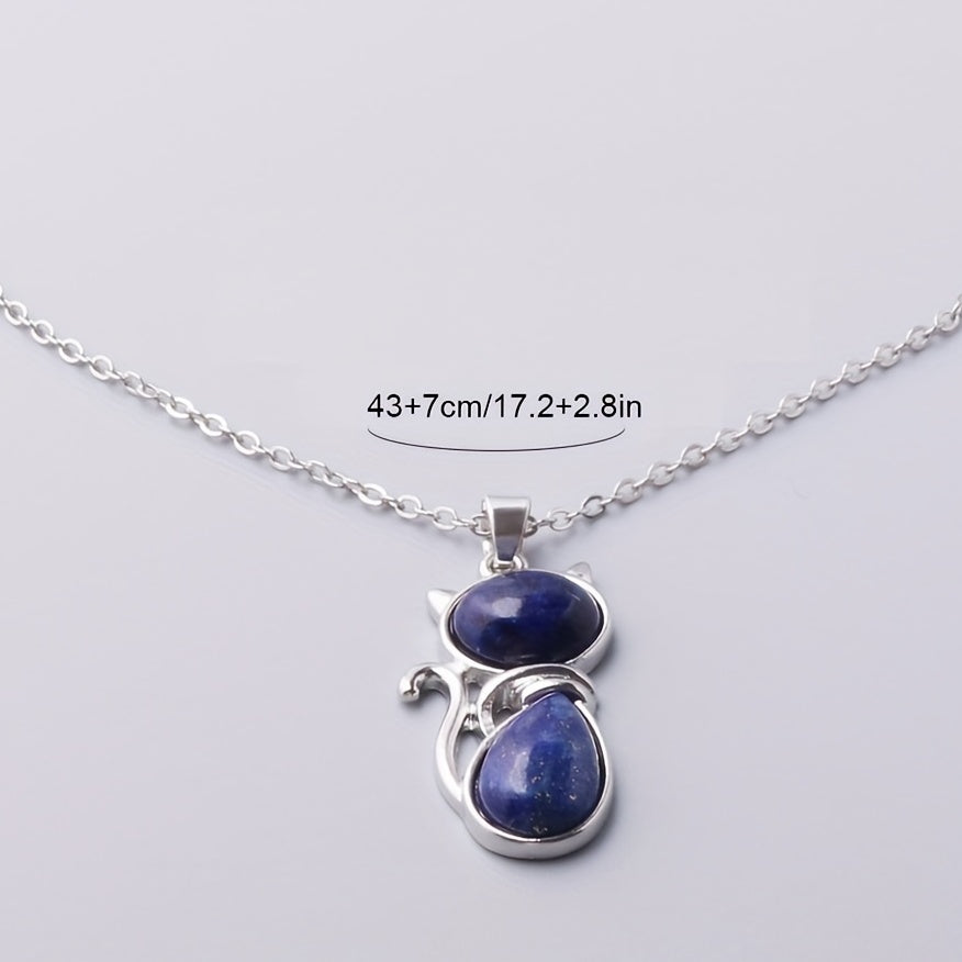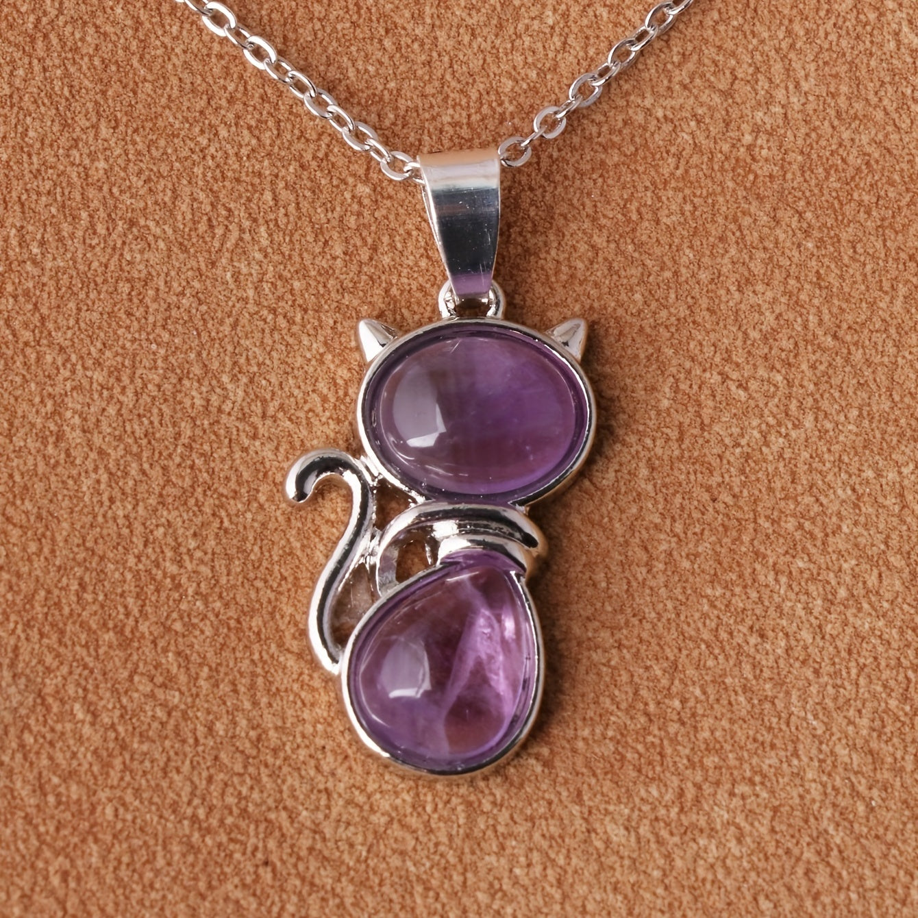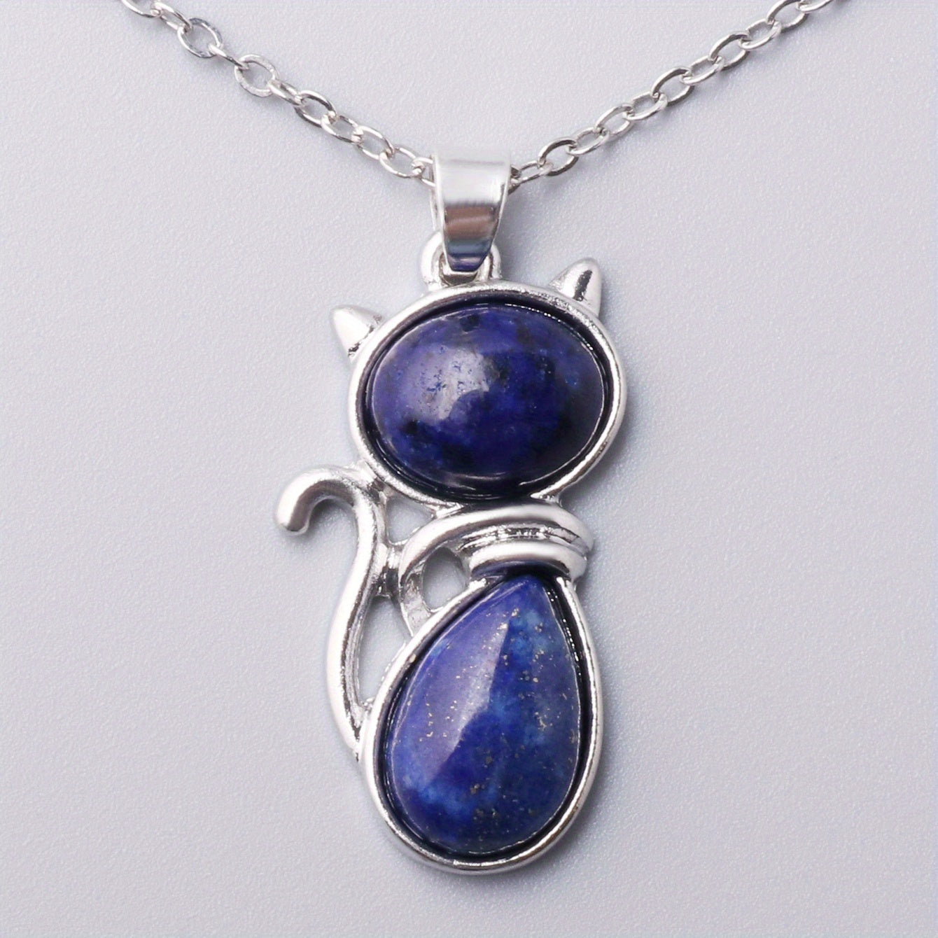 Add a touch of whimsical charm to your look with this cat pendant necklace. Crafted from lapis lazuli and amethyst stones, this pendant features two beautiful colors that will complement any outfit.
