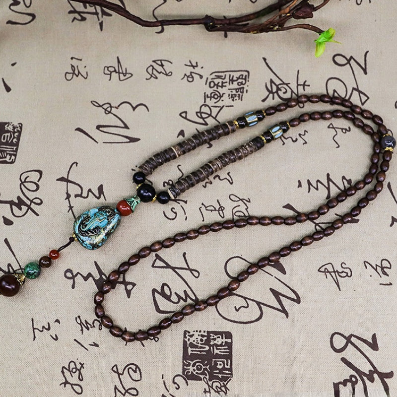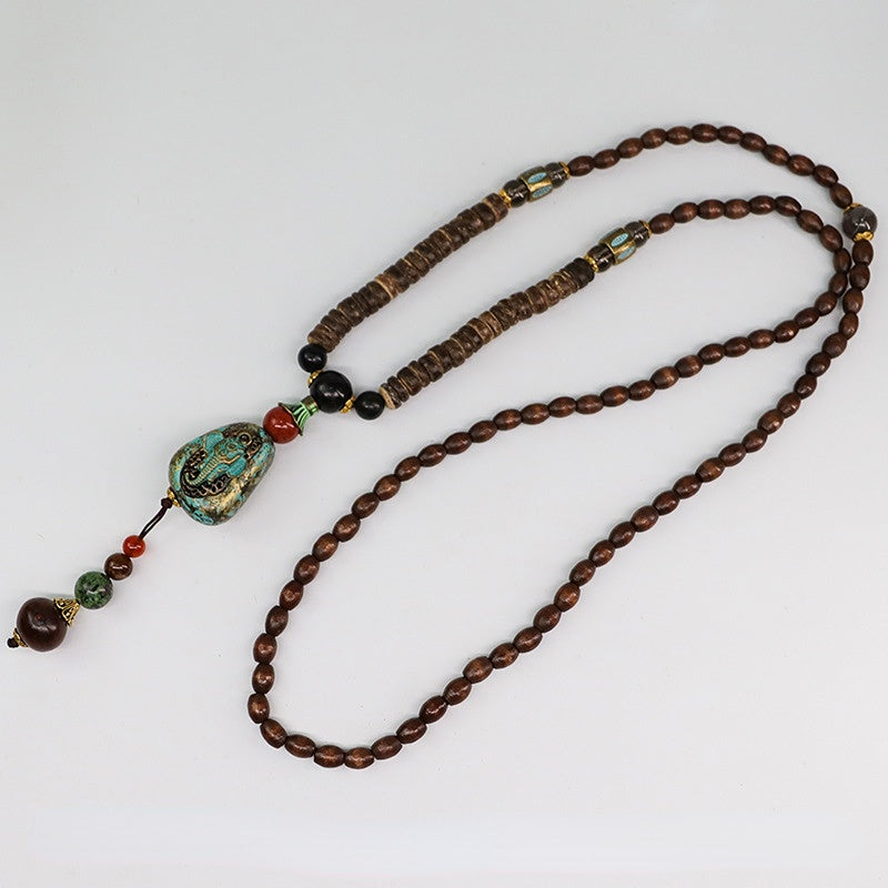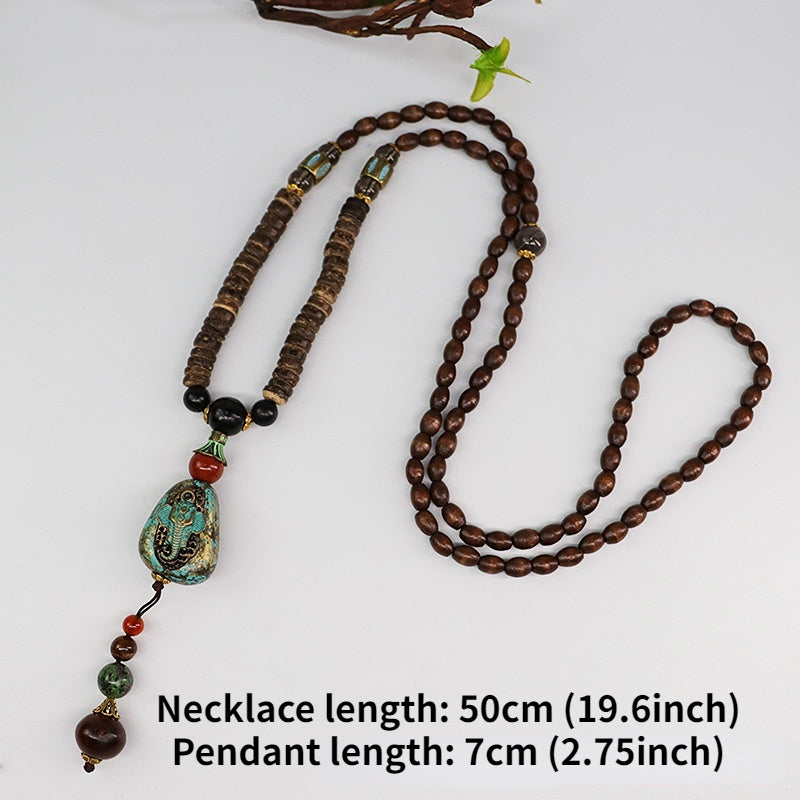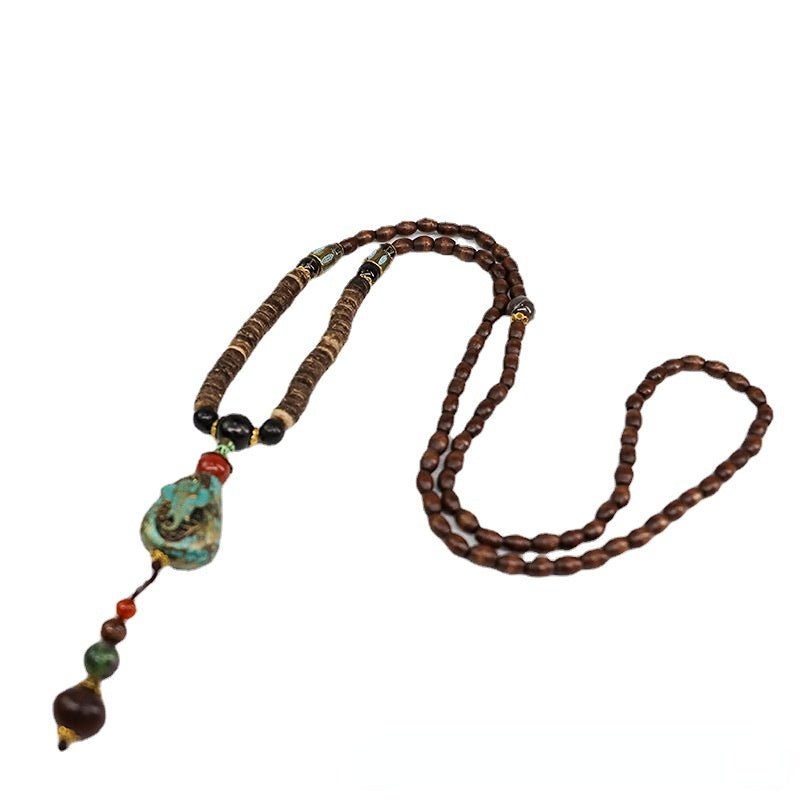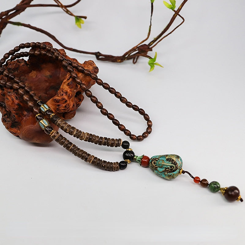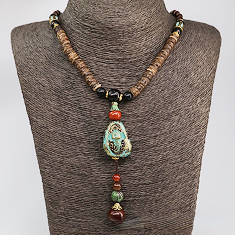 Nepal Tangka Elephant God Pendant Necklace Ethnic Style Beads Long Chain