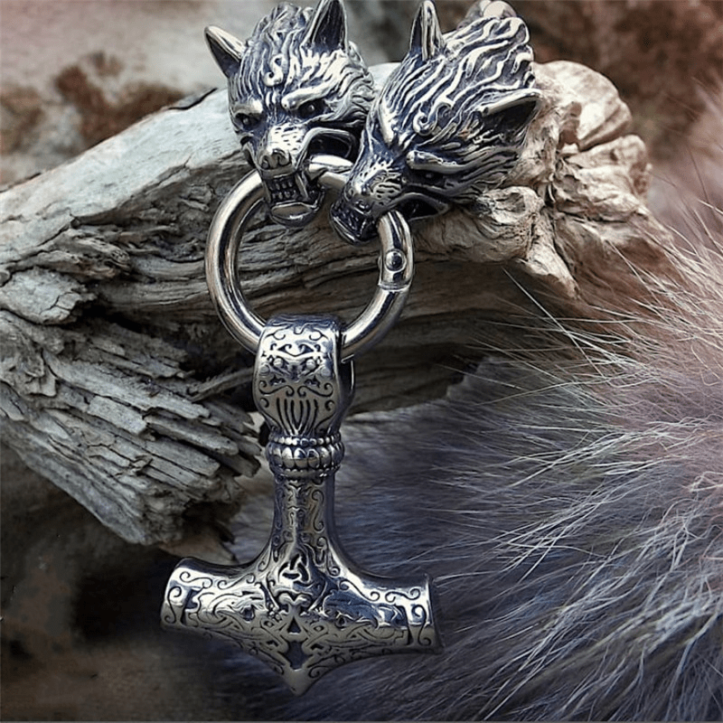 This vintage necklace features a Viking wolf head hammer pendant, making it a perfect amulet jewelry piece for men. Ideal for hip hop style, it also makes a great gift for Christmas, holidays, or party decorations.