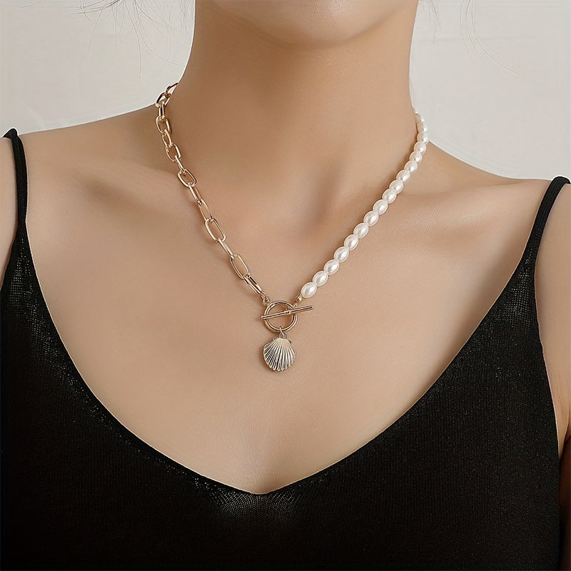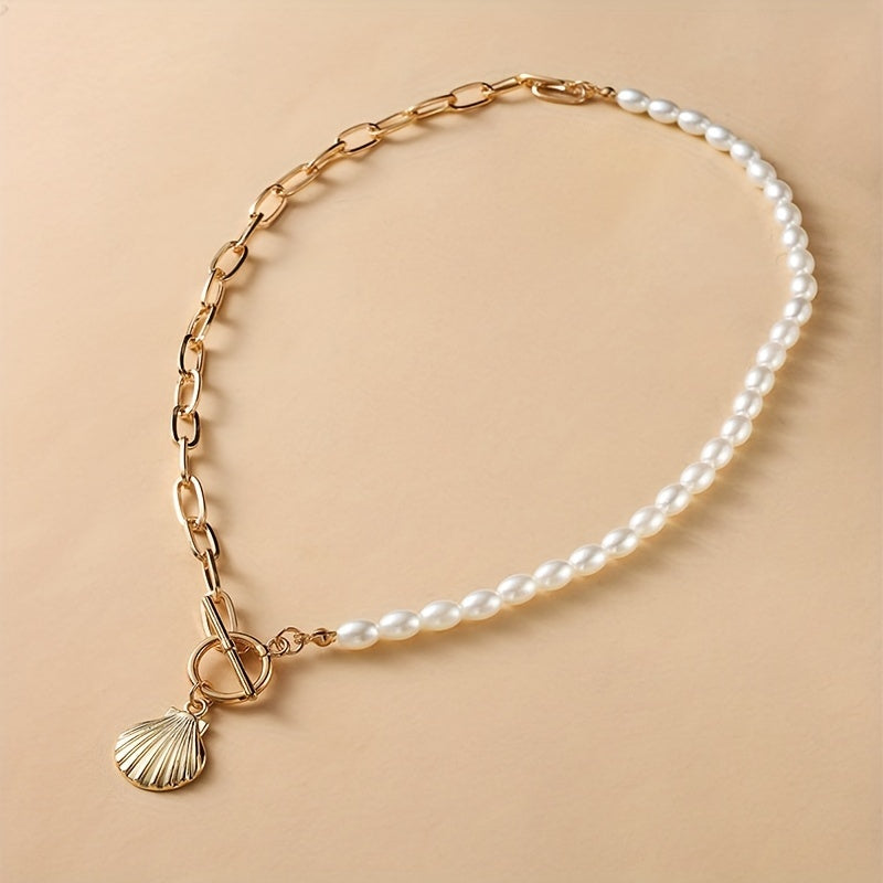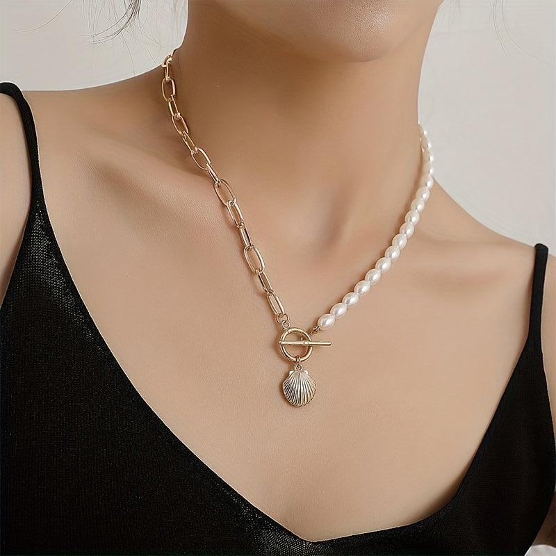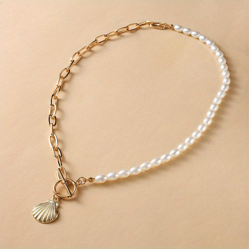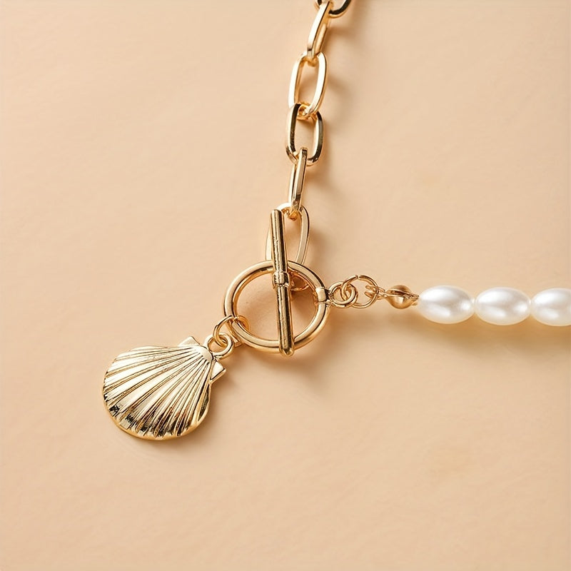 Ocean Style Shell Pendant Pearl Chain Necklace For Women