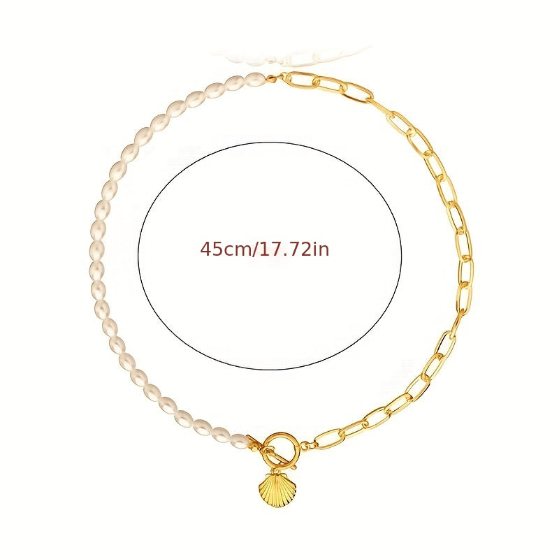 This beautiful necklace features a shell pendant on a string of elegant pearls with an OT buckle. Perfect gift for women and girls.