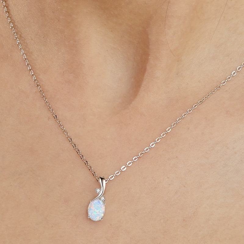 Add a touch of bohemian flair to your outfit with this stunning oval cut opal necklace. The adjustable length makes it perfect for any neckline.