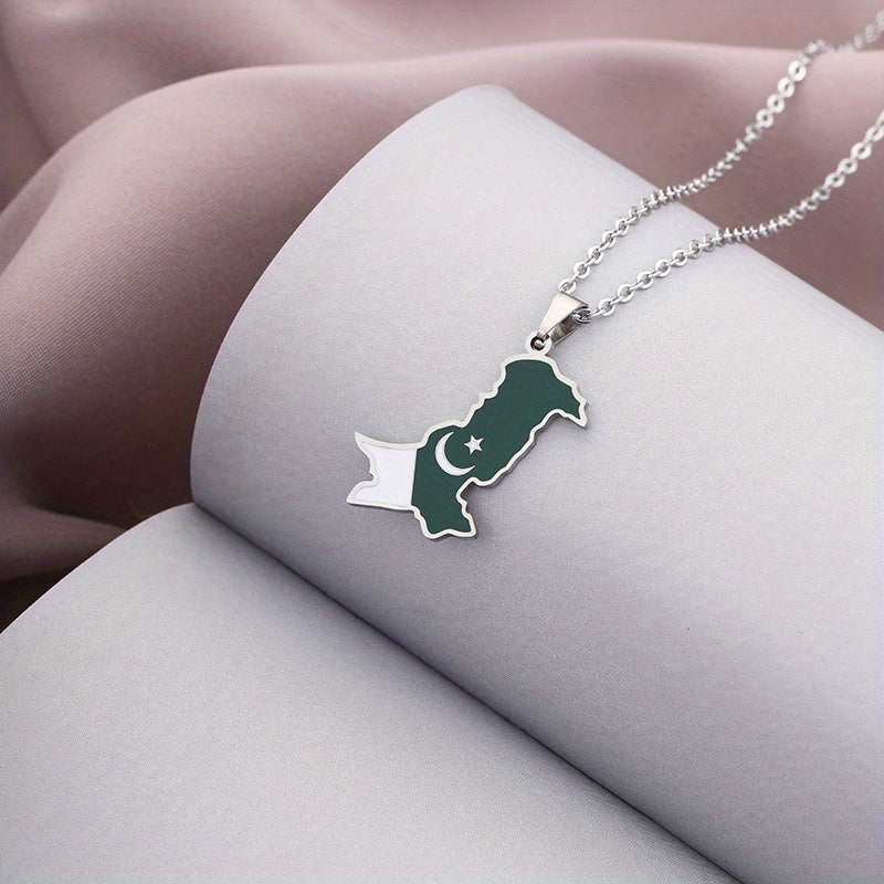 Pakistan Map Flag Pendant Necklace Titanium Steel Holiday Party Gift