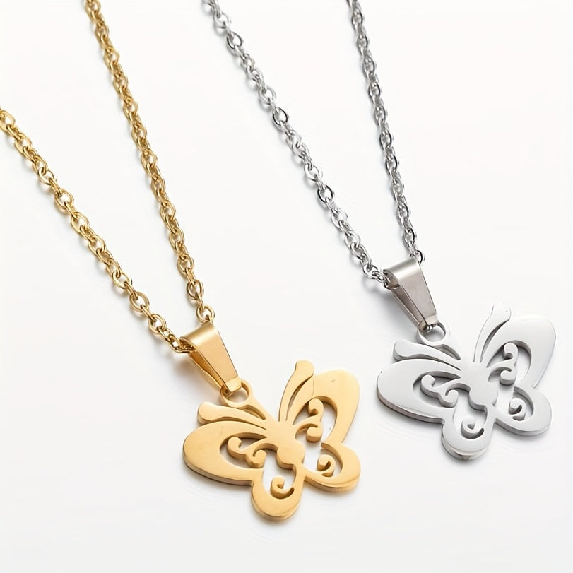 This hollowed out butterfly necklace is a unique and stylish accessory for men, made of high-quality stainless steel.