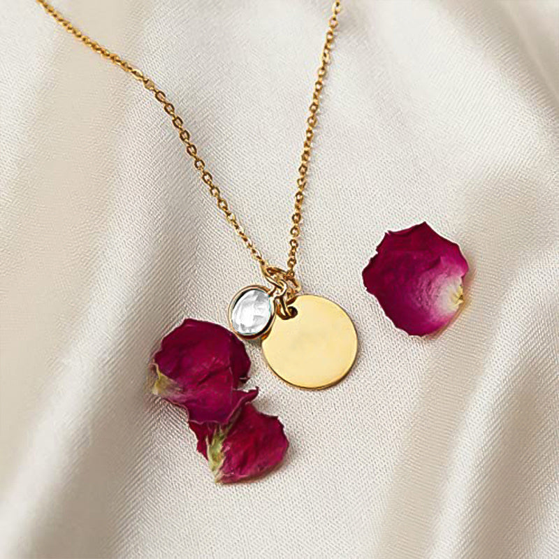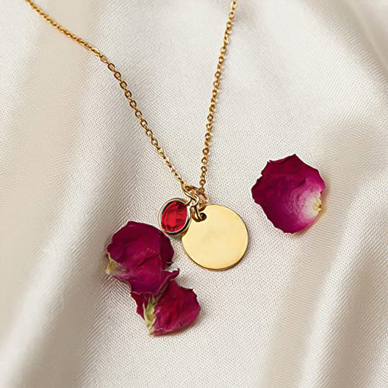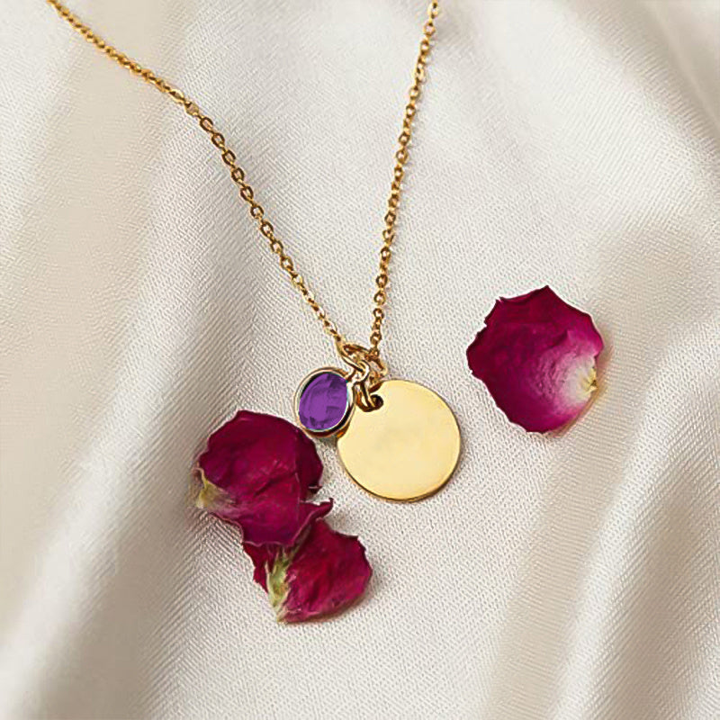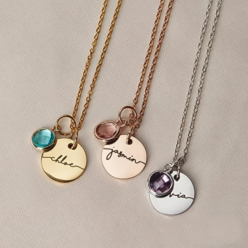 Personalized Birthstone Necklace - Engraved Name Stainless Steel