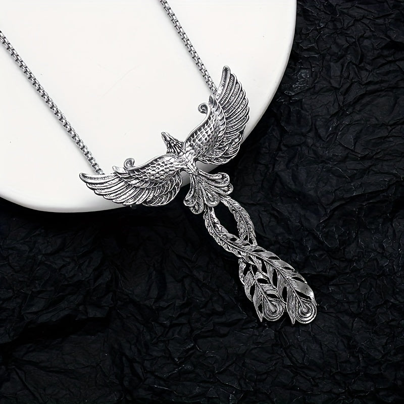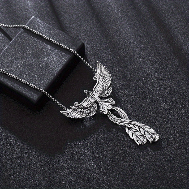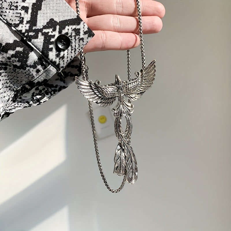 Stylish alloy necklace featuring a phoenix theme design for men.