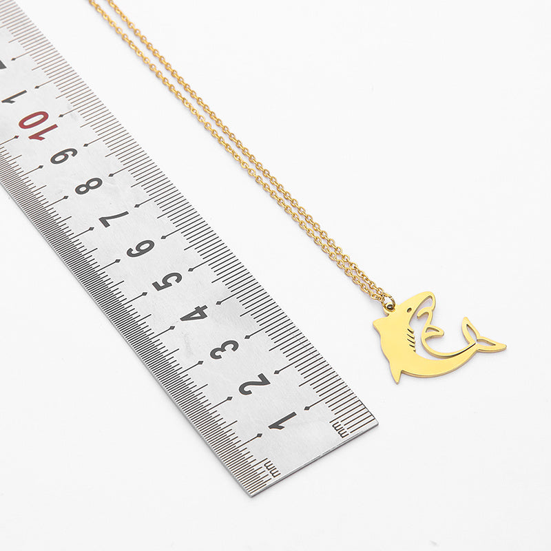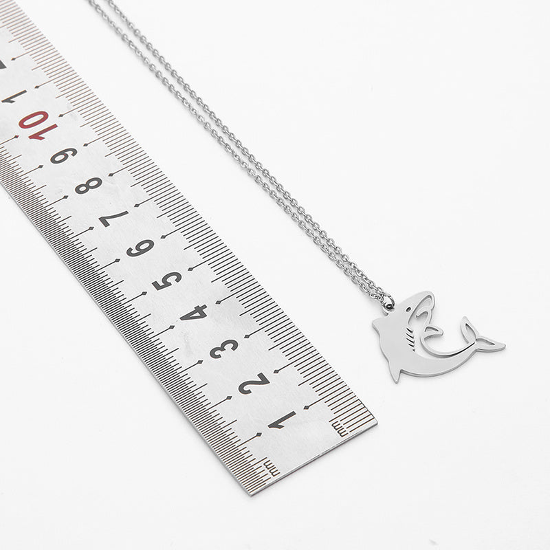 This stainless steel pendant necklace features a playful dolphin design, making it a perfect accessory for dolphin lovers. Ideal for anniversaries or special occasions.