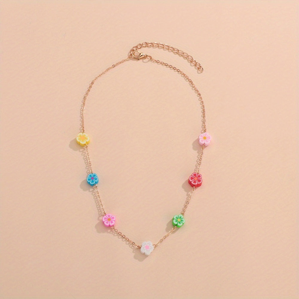 Polyester Daisy Flower Choker Necklace Summer Beach Style