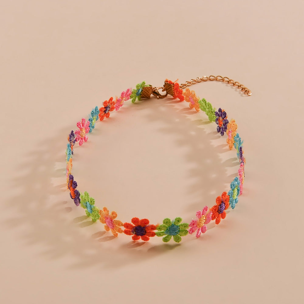 • Colorful polyester choker necklace with daisy flowers