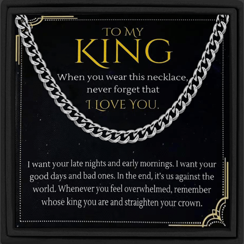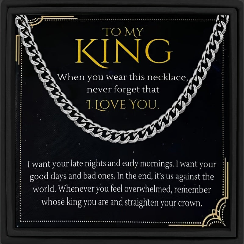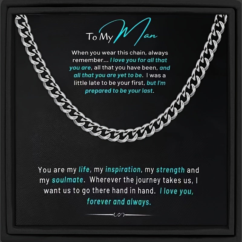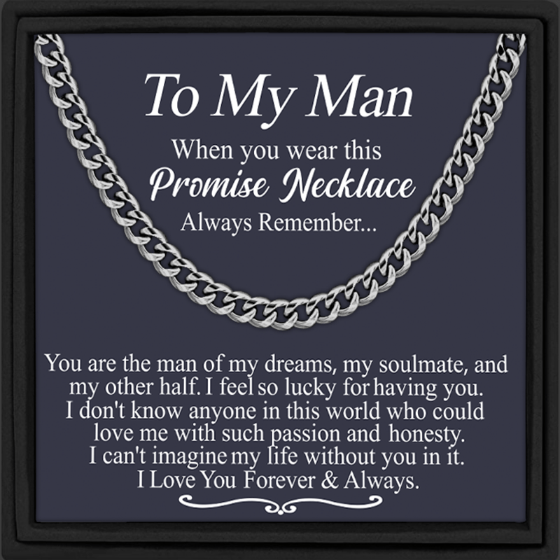 Surprise your man with this promise necklace for boyfriend or husband. A sleek Cuban link chain necklace that makes a perfect birthday or anniversary gift.