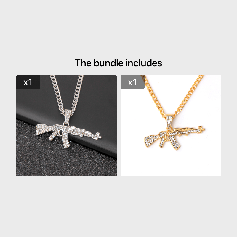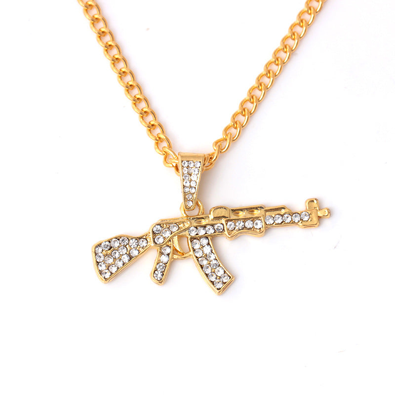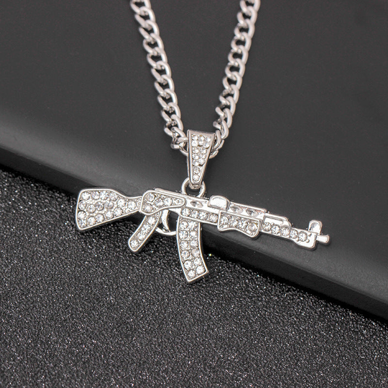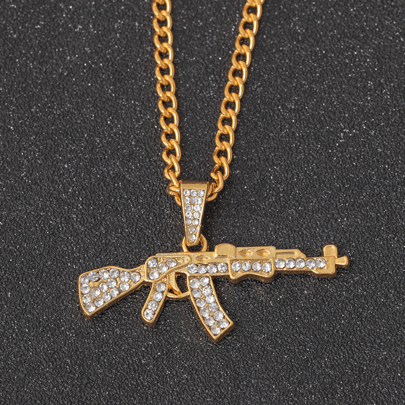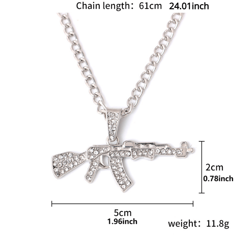 Express your unique style with this punk hip hop necklace featuring a full drill submachine gun pendant.