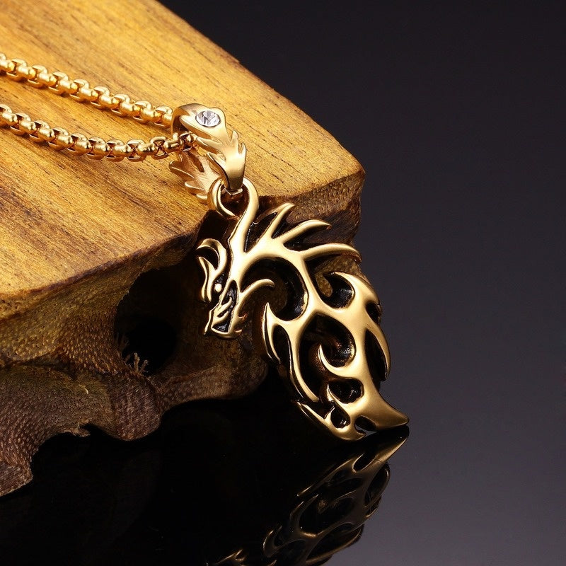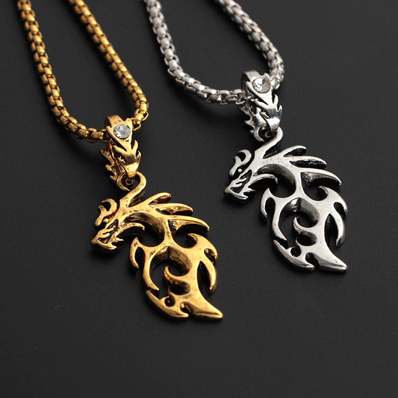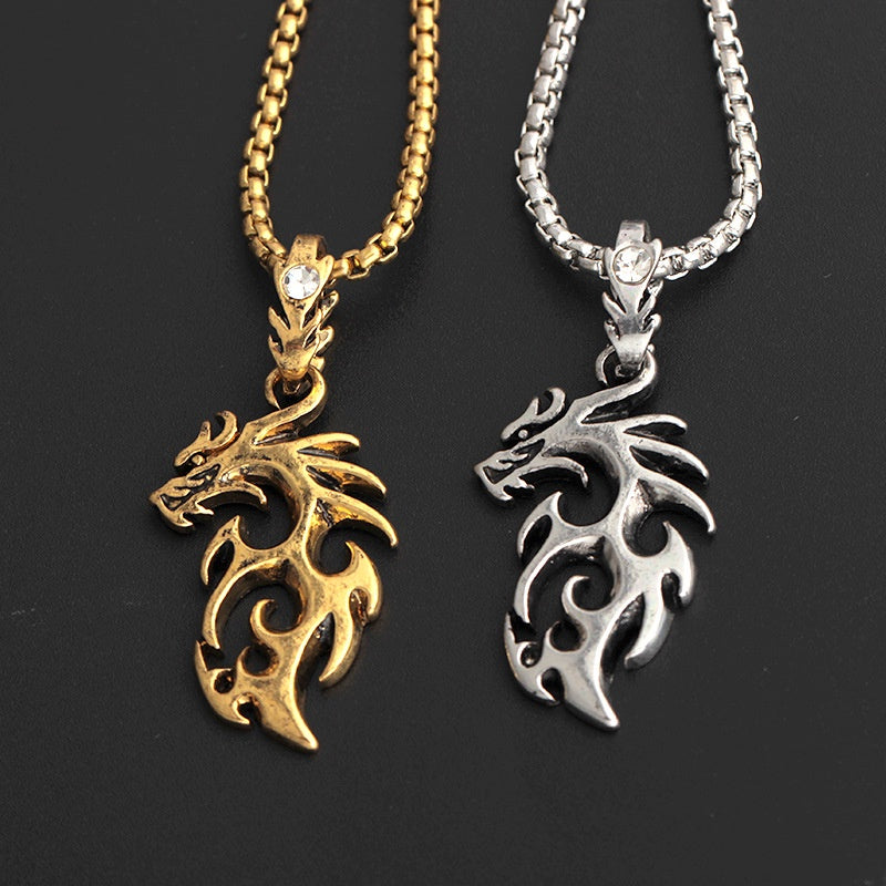 Punk Hollow Dragon Pendant Chain Necklace
