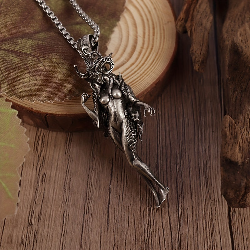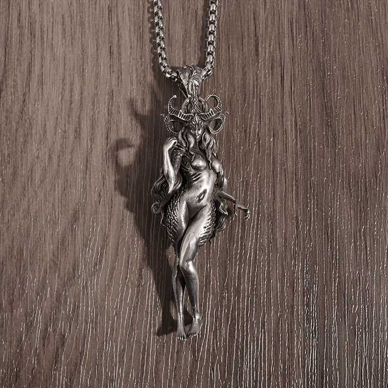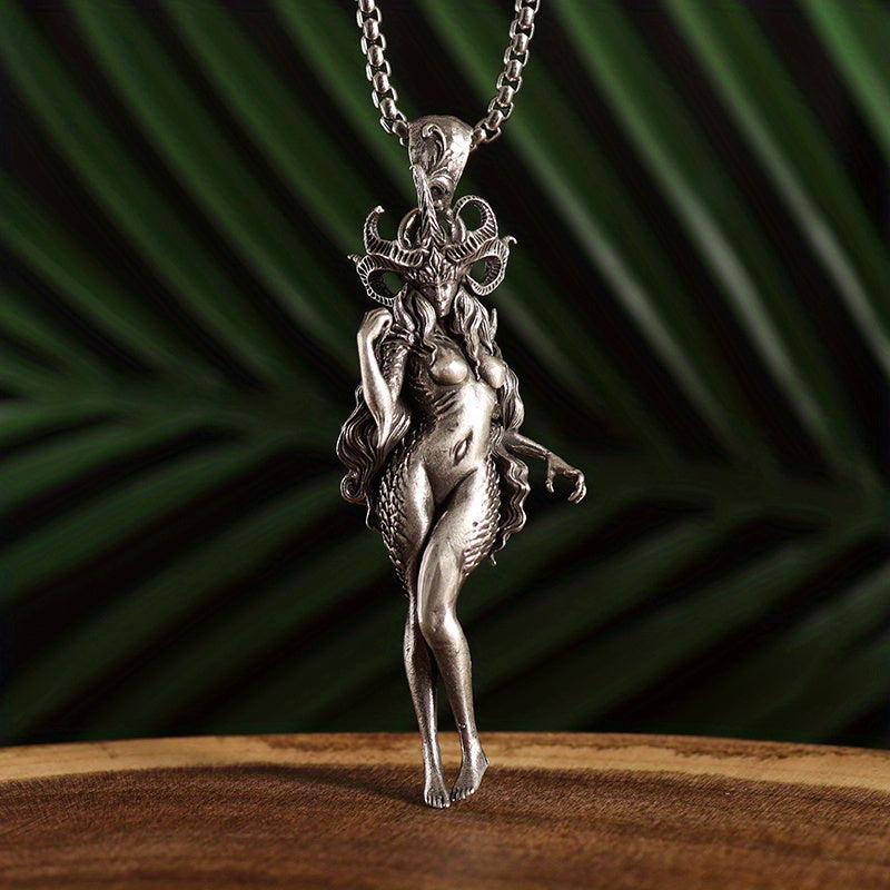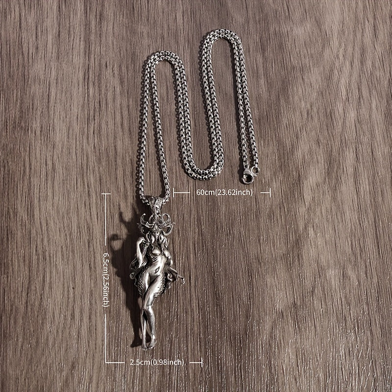 This punk horn pendant necklace features a unique design with a nude goddess charm. It is perfect for daily wear and makes a great gift for men.