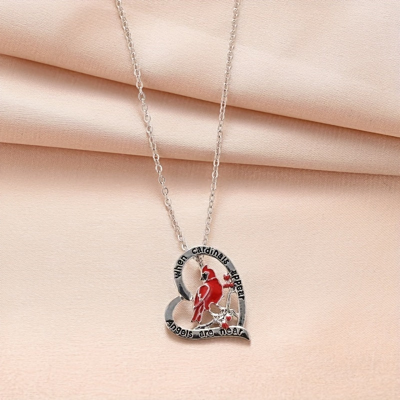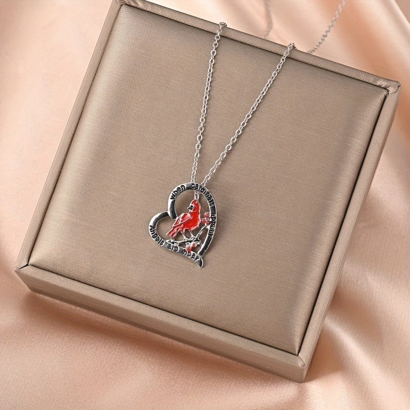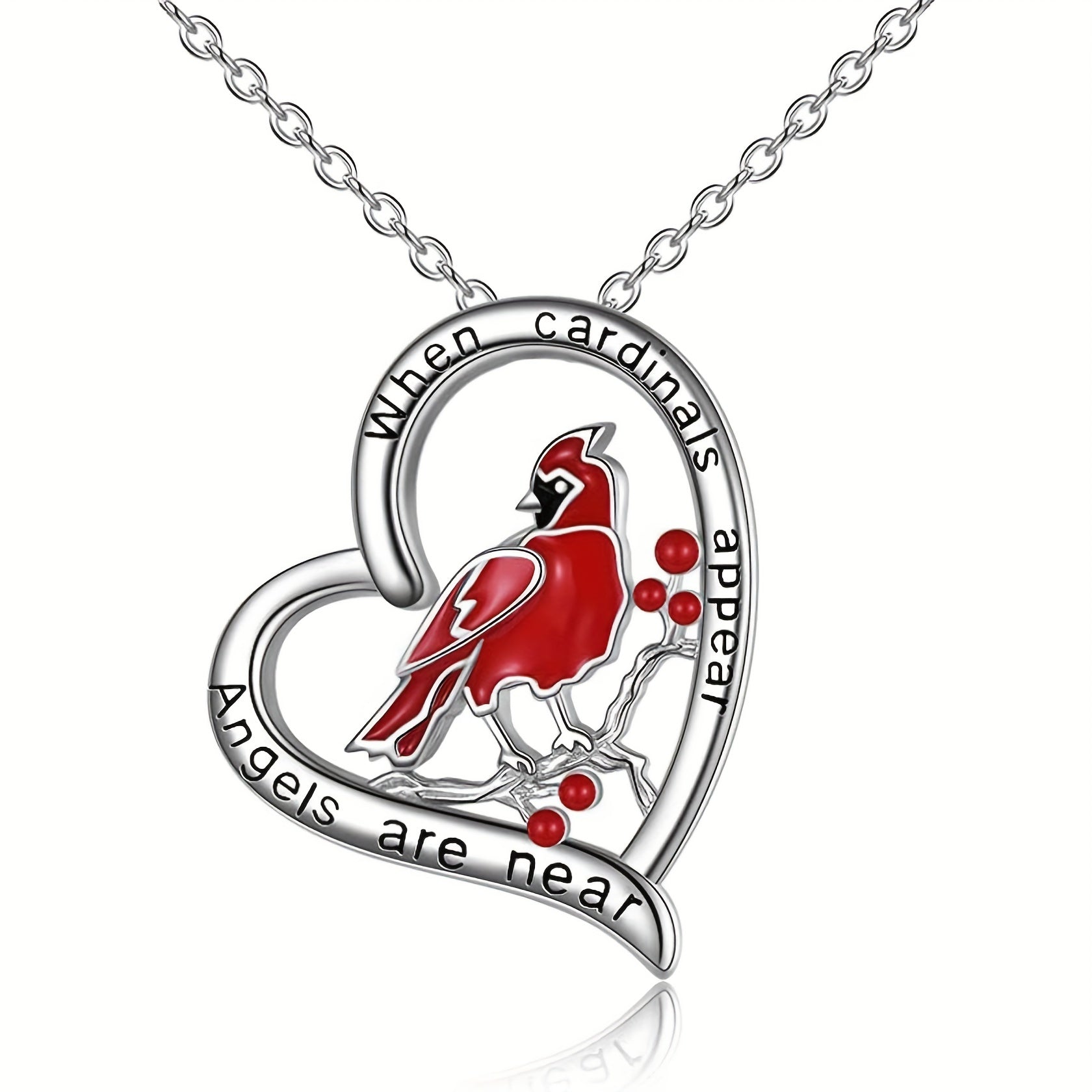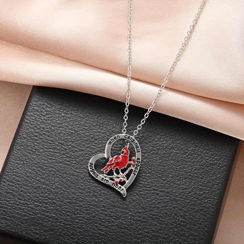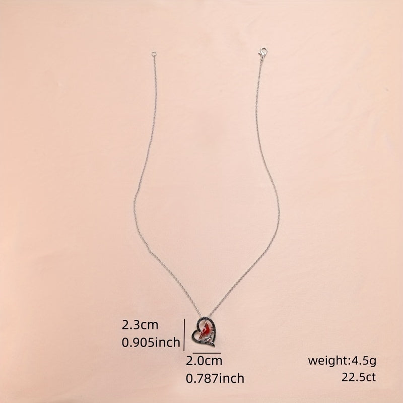 Express your love with this elegant heart-shaped pendant necklace featuring a red bird design. Perfect gift for women and girls.