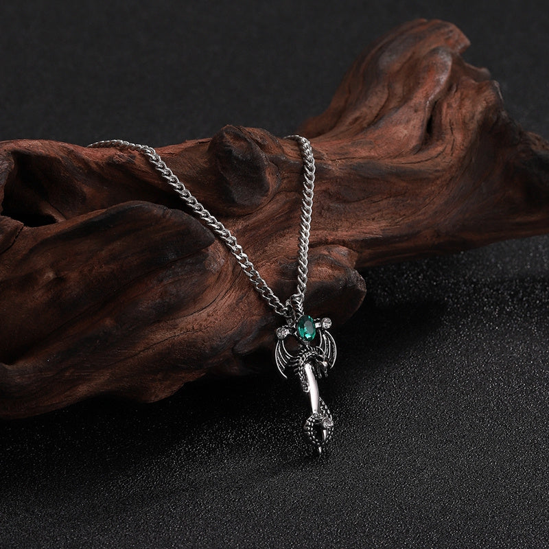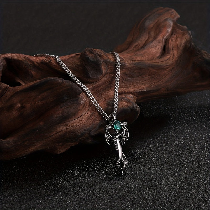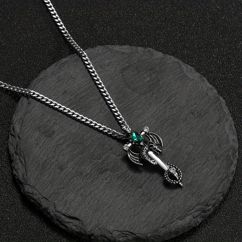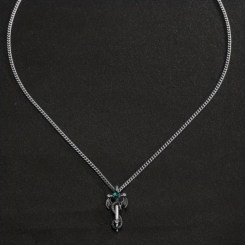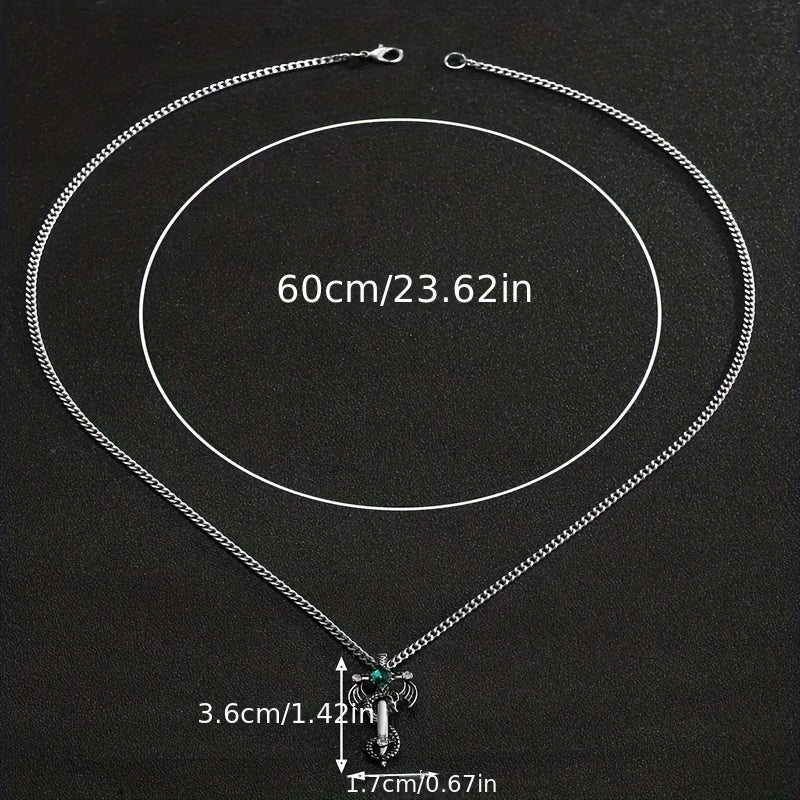 Embrace the mystical with this retro style flying dragon pendant necklace set. Crafted with rhinestone glass. Perfect for men with a unique sense of style.