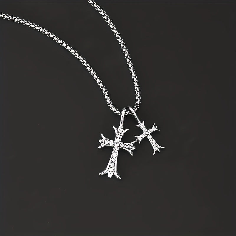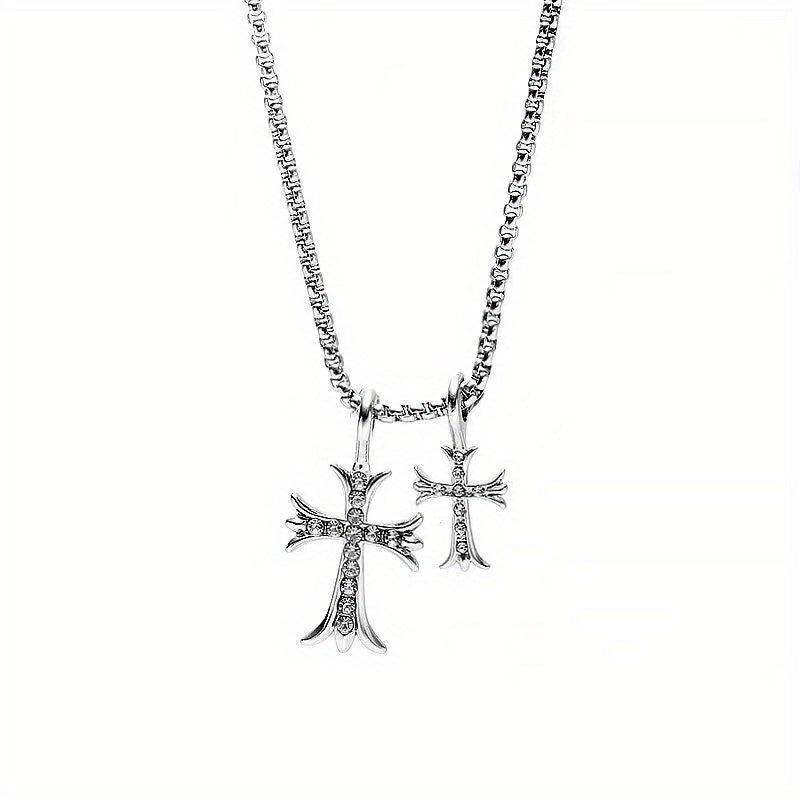 This hip hop pendant necklace features a stylish rhinestone cross design on titanium steel for a retro look.
