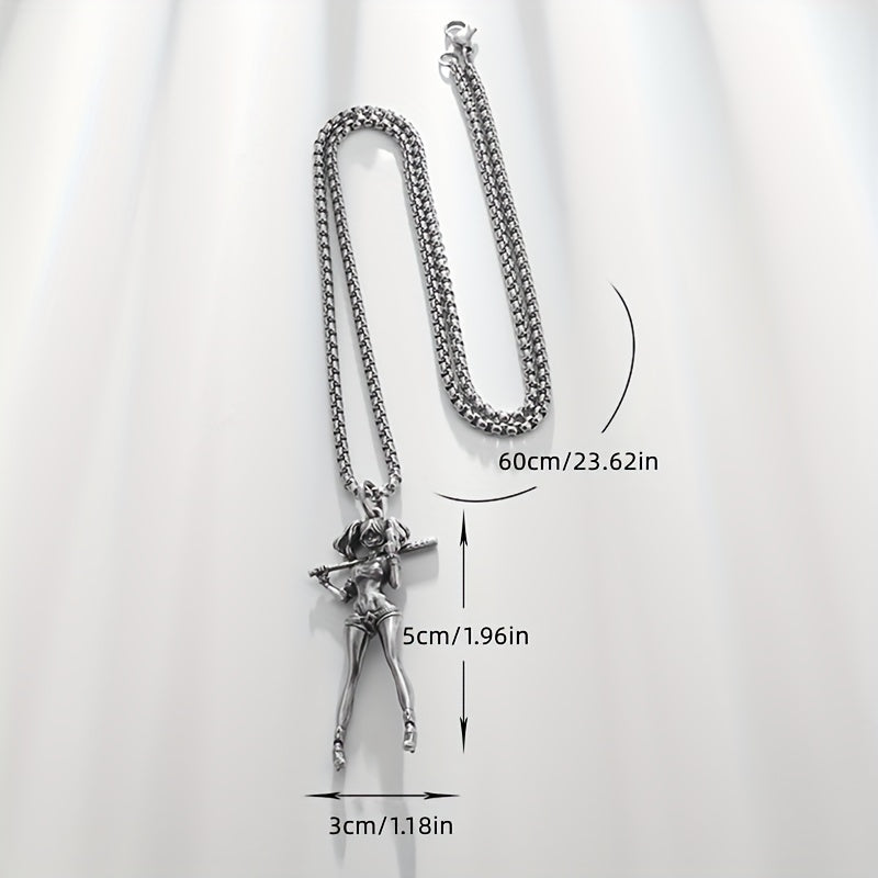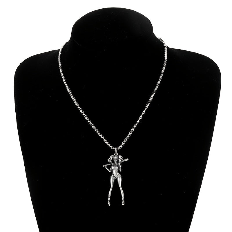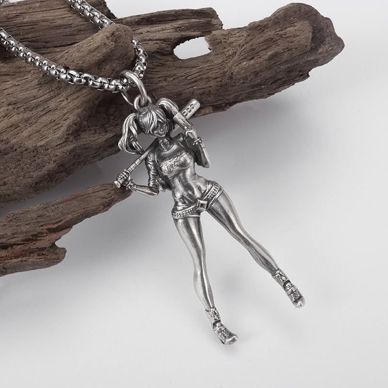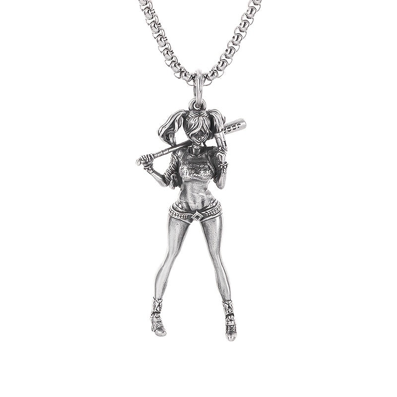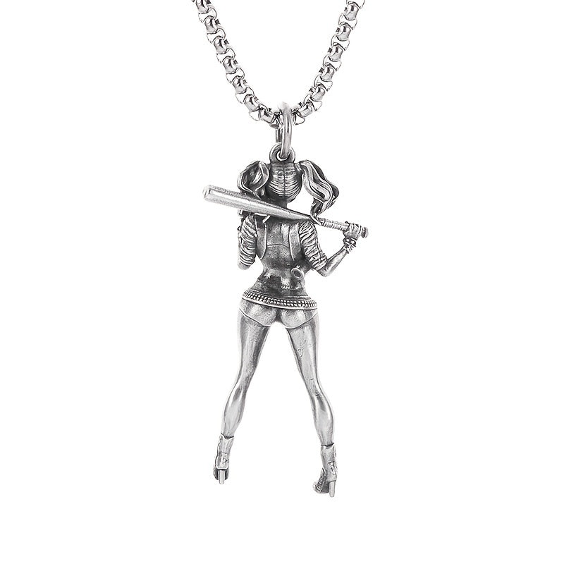 Retro Silver Baseball Girl Charm Necklace for Men