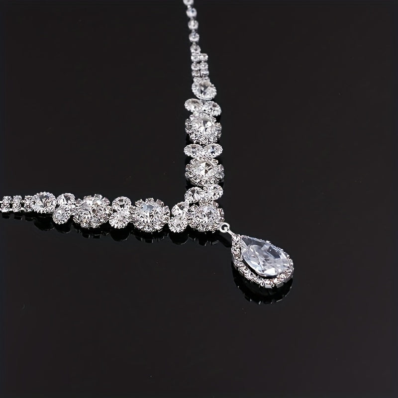This stunning jewelry set features rhinestone accessories with water drop design. Perfect for adding sparkle to your outfit.