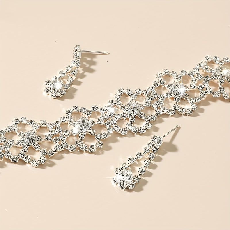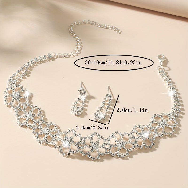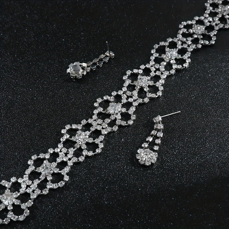 Elegant jewelry set featuring a hollow flower design adorned with sparkling rhinestones. Perfect for special occasions or adding glam to any outfit.