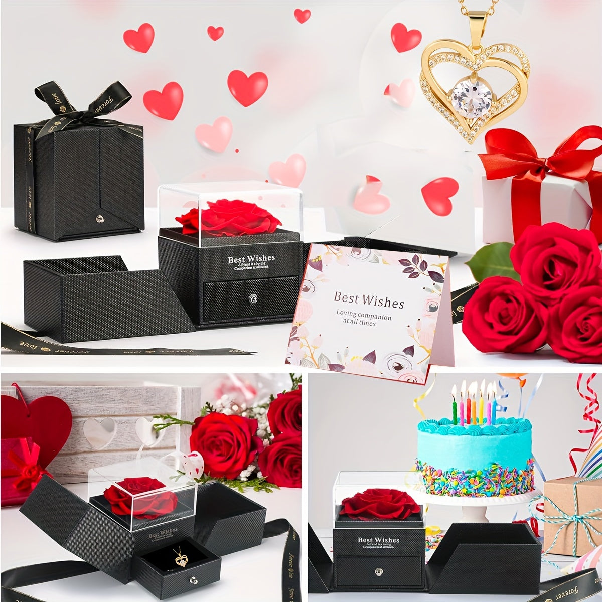 Show your love with this beautiful necklace featuring a rose and double heart pendant. Perfect gift for your mom, wife, daughter, girlfriend on Christmas, anniversary, or mother's birthday.