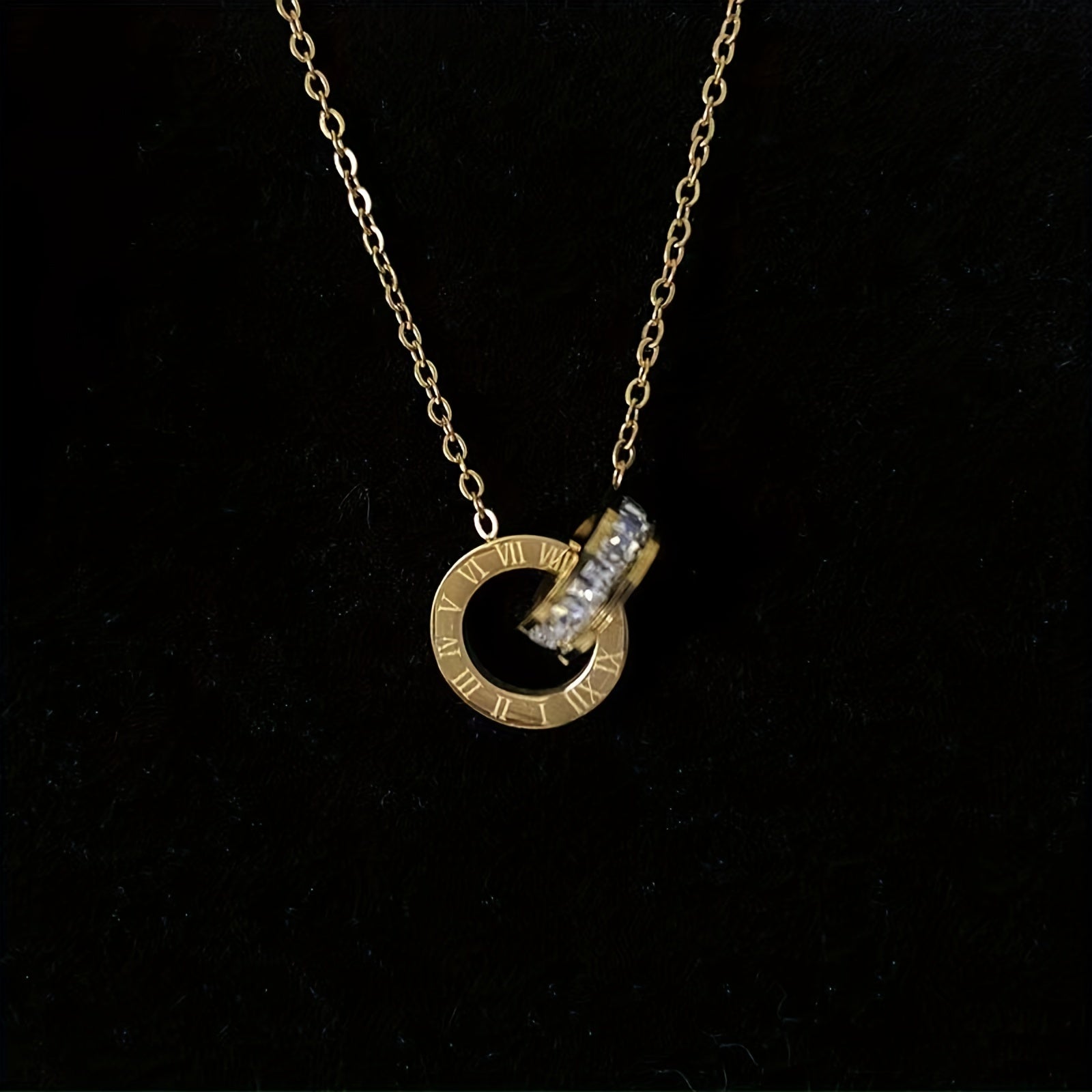 Complete your look with this elegant set of rose gold stainless steel jewelry that includes a necklace, bracelet, and earrings featuring Roman numerals design.