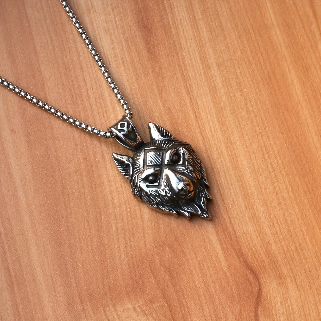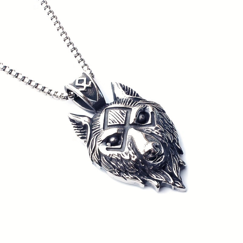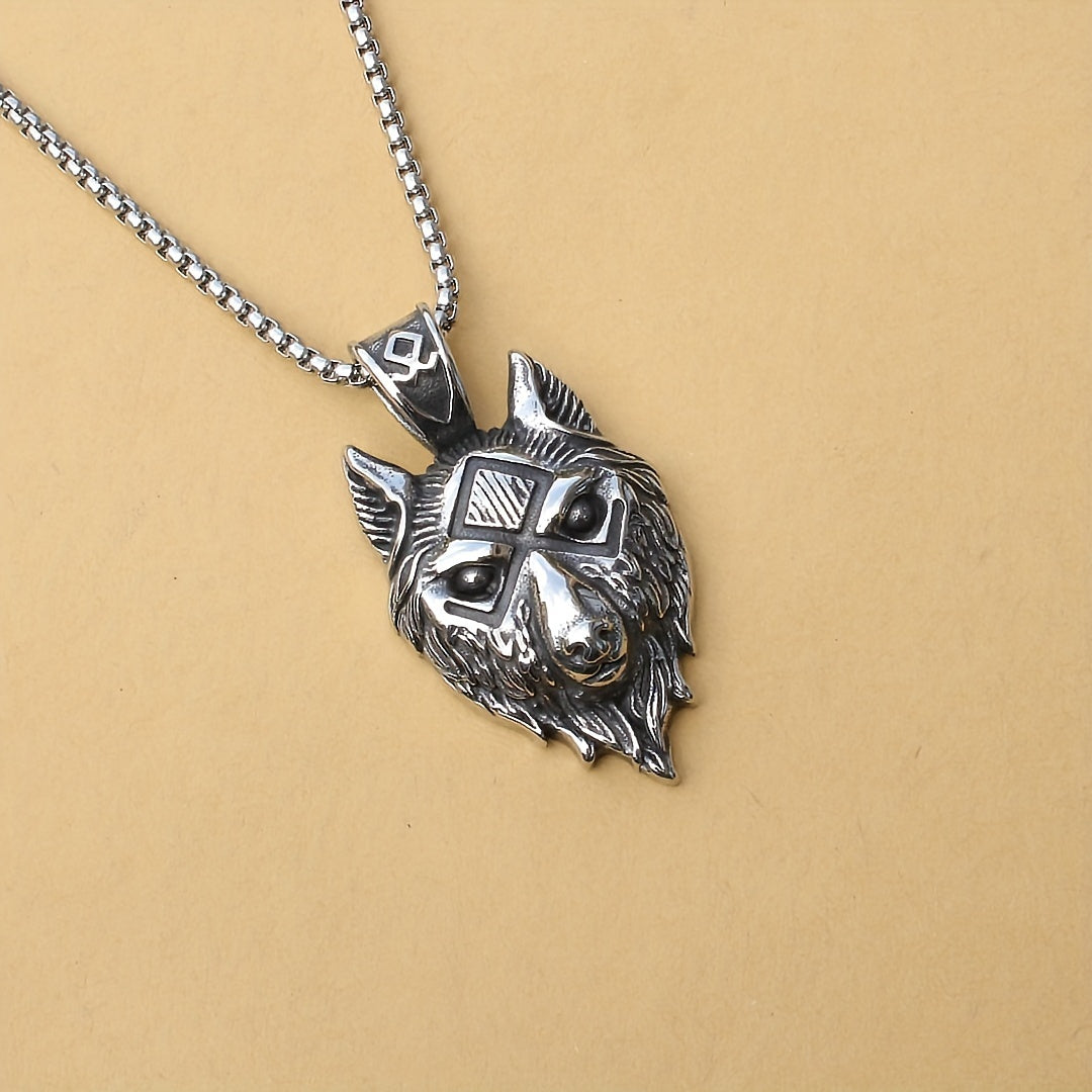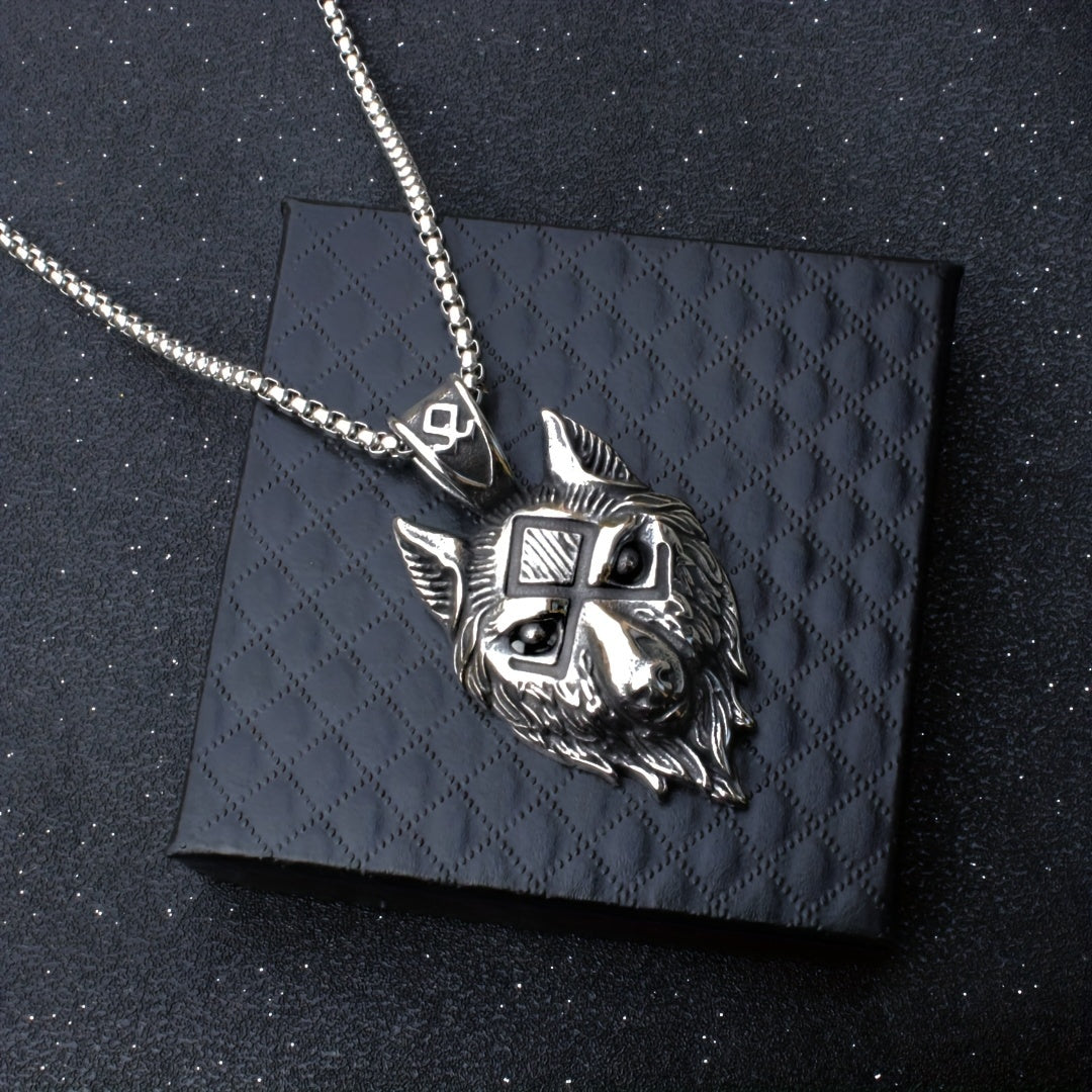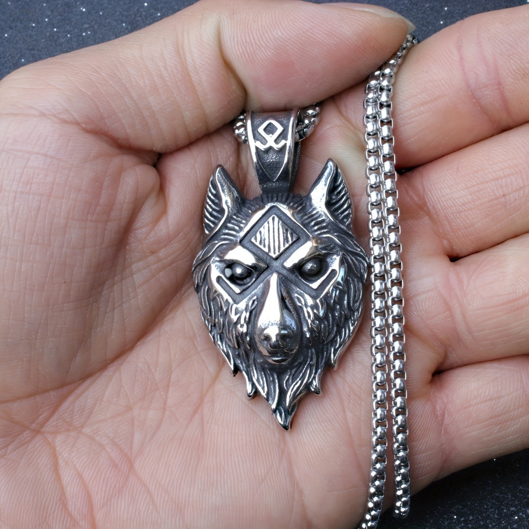 This men's necklace features a stylish wolf head pendant with rune accents, perfect for streetwear or daily casual wear. It makes a great gift for men who appreciate unique jewelry.