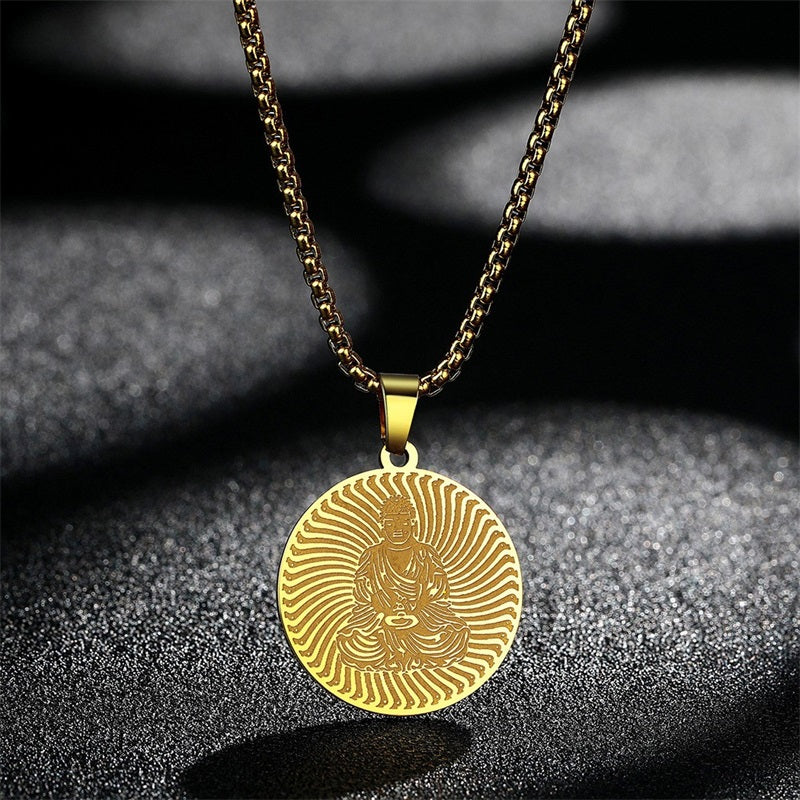 This stainless steel necklace features a retro Buddha pendant, making it a unique and meaningful birthday gift for men.
