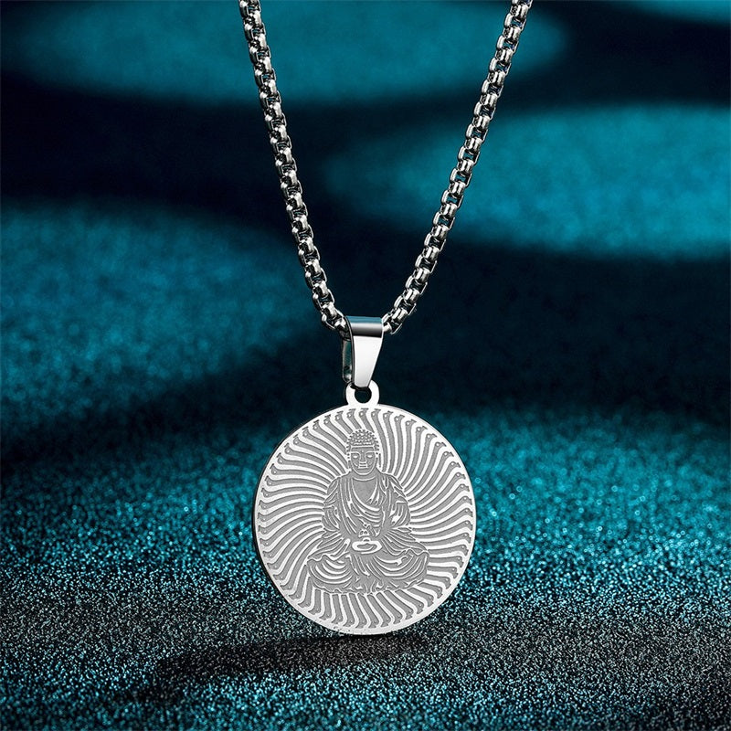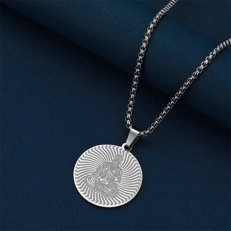 S1 Pc Men's Necklace Stainless Steel Retro Buddha Pendant Birthday Gift