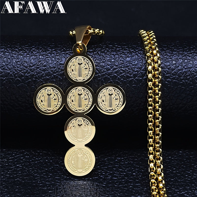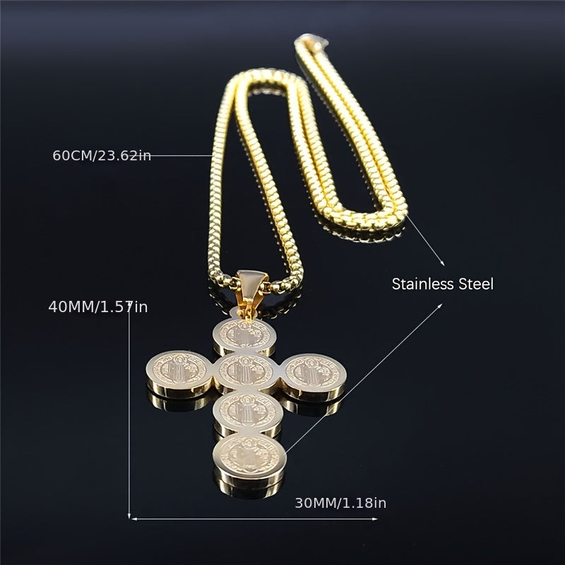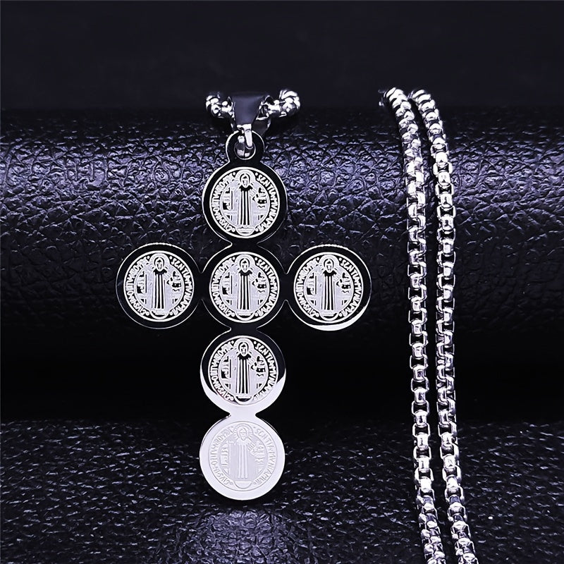 Saint Benedict Cross Necklace Stainless Steel Catholic Jewelry