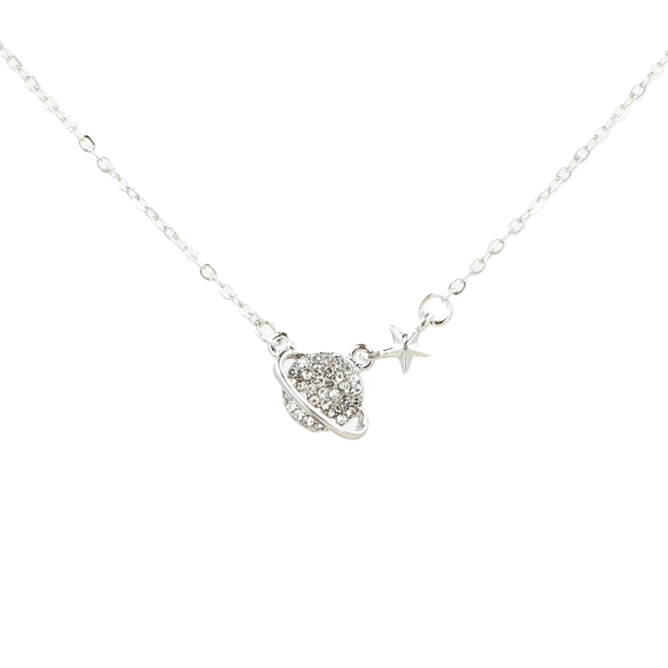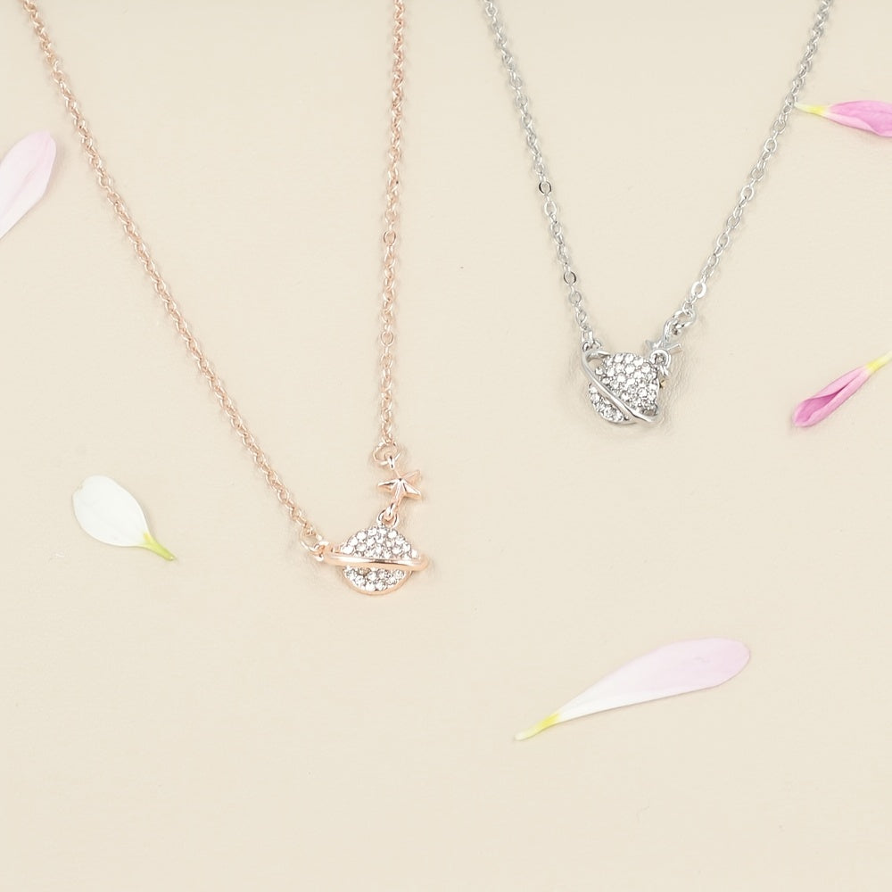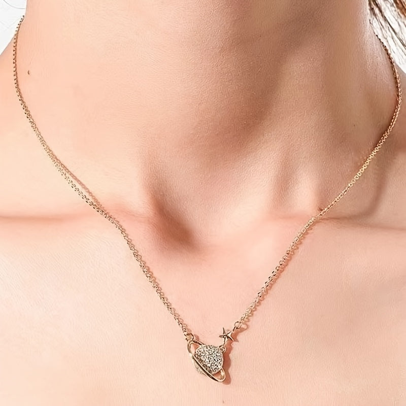 This Saturn necklace features a star pendant, making it a perfect accessory for your bestie. It's a charming clavicle chain necklace designed for women.
