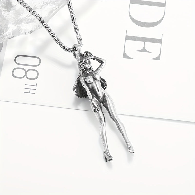 This unique pendant features a sexy body goddess design, perfect for adding a touch of charm and personality to your look. The long chain adds a hip hop rock street vibe to any outfit.