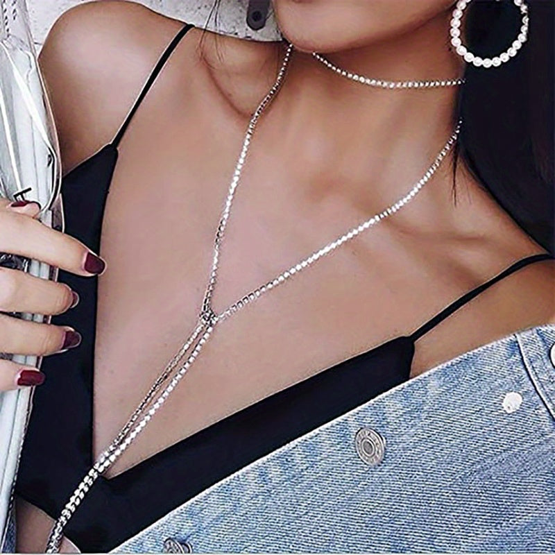 Sexy Layered CZ Necklace Rhinestone Body Chain for Women Y2K