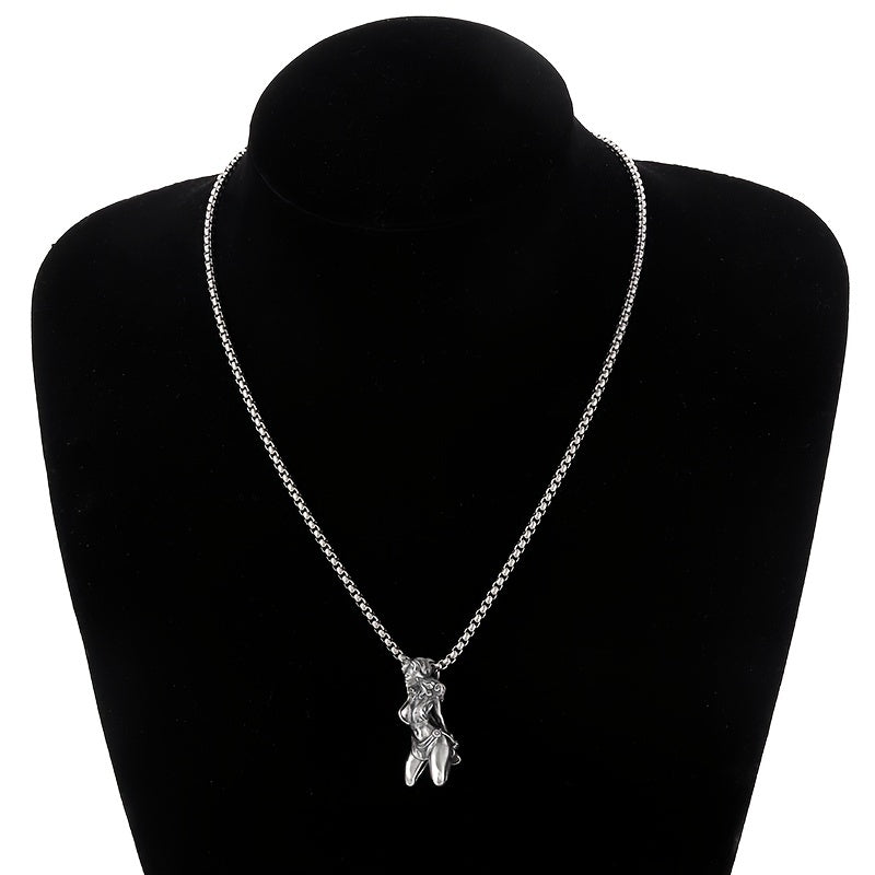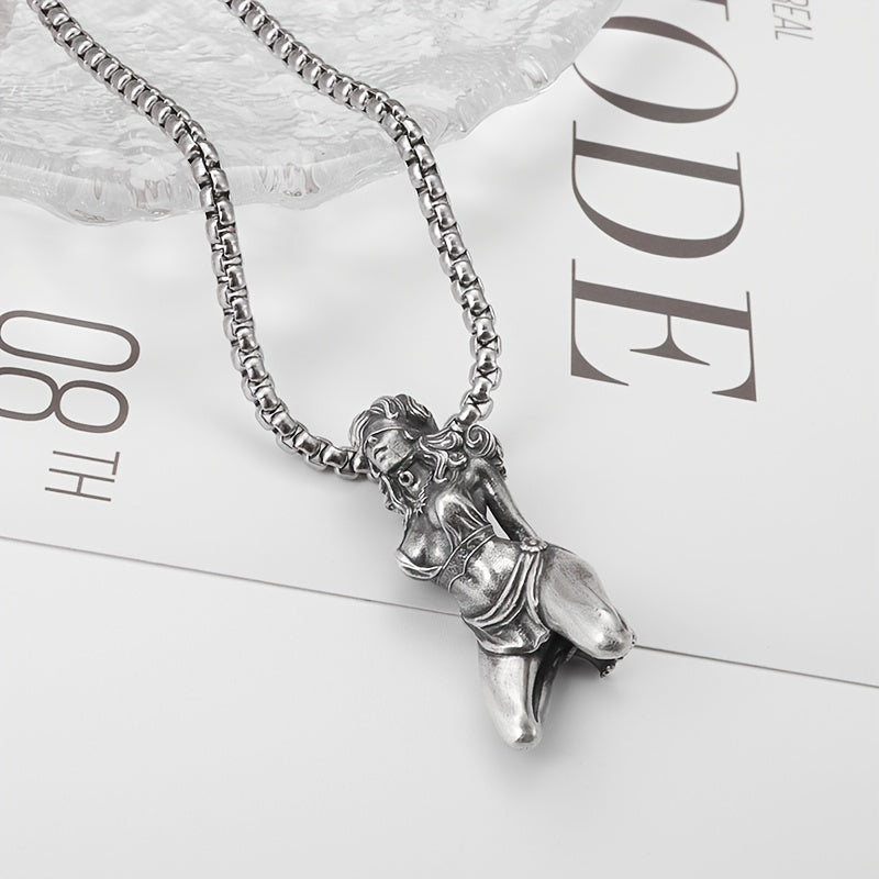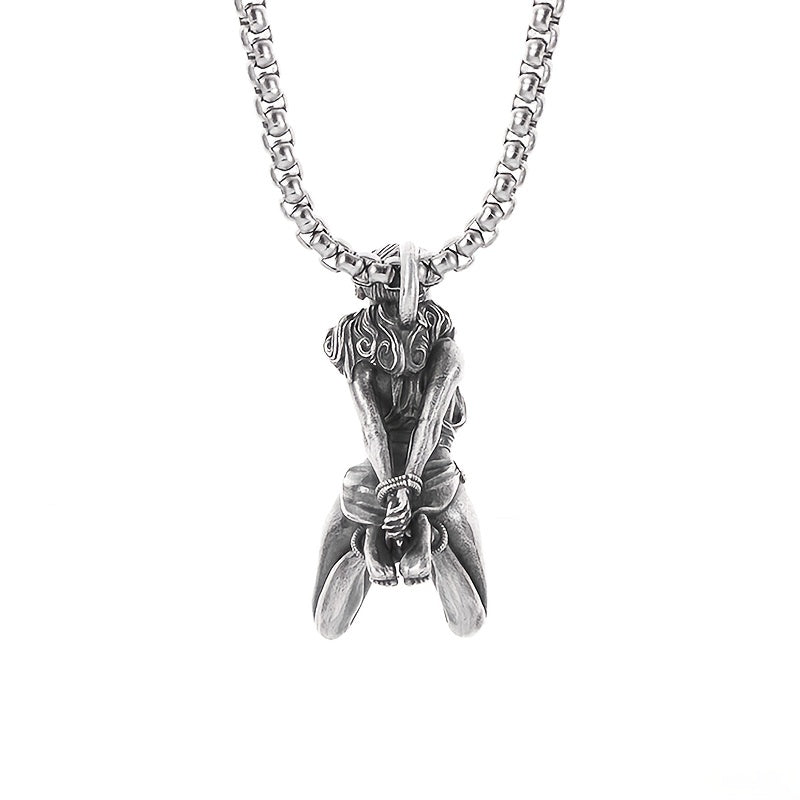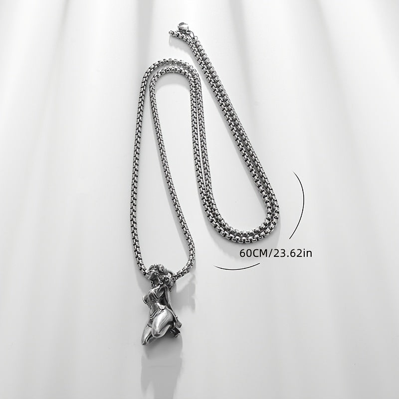 Add a touch of creativity to your look with this silver pendant necklace. Perfect for casual street style or motorcycle enthusiasts.