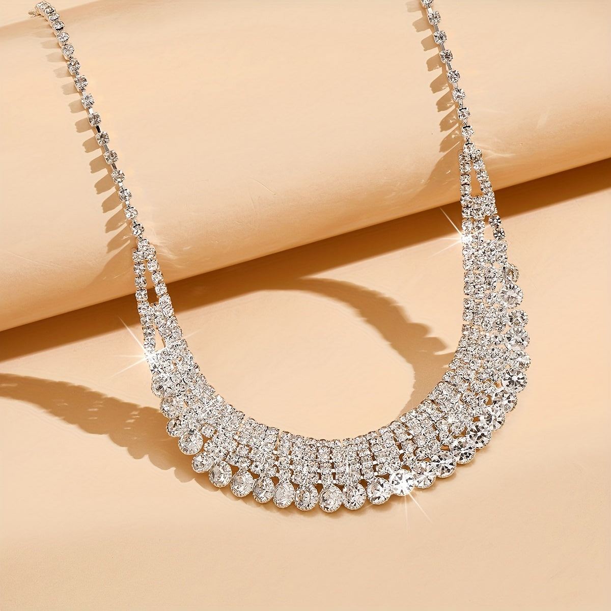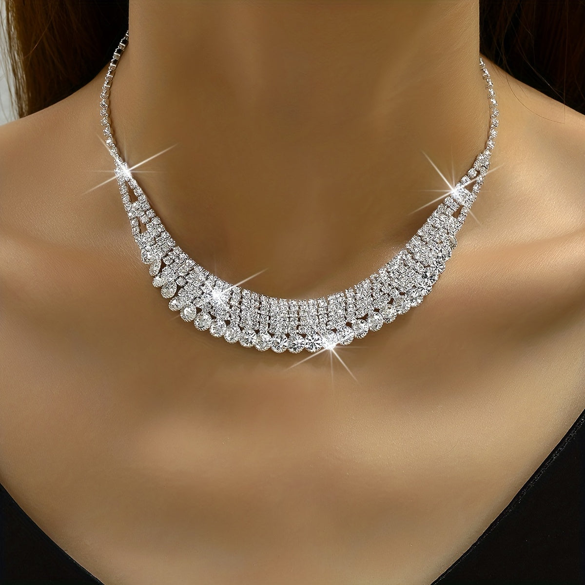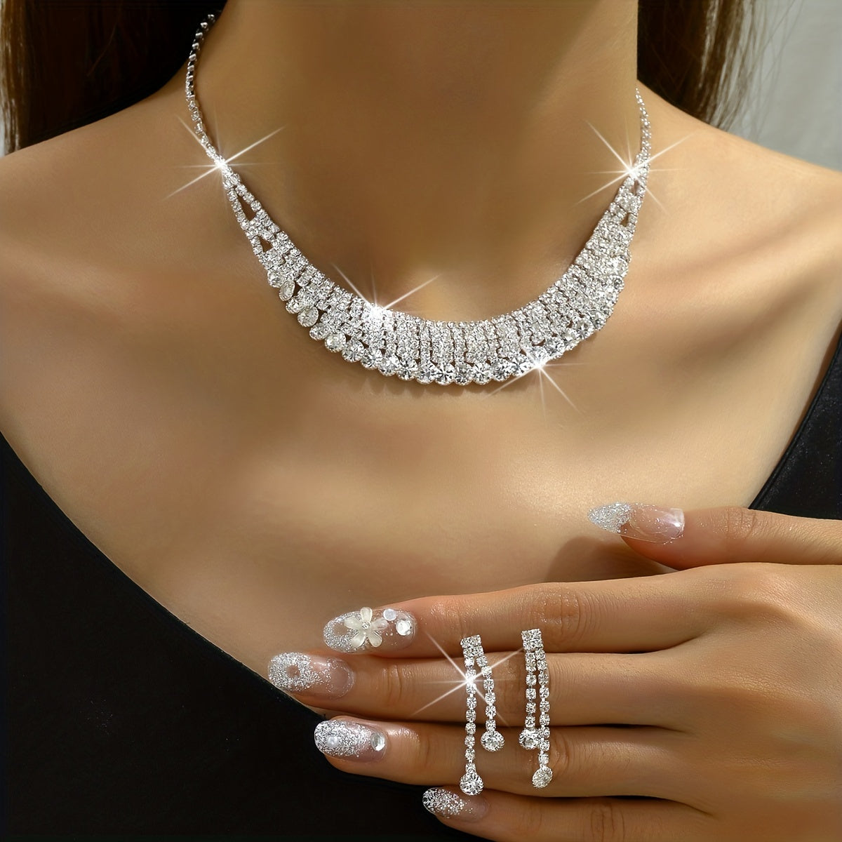 Complete your elegant look with this classic jewelry set. The set includes earrings and necklace with rhinestone inlay, perfect for engagements, weddings, parties, and more.