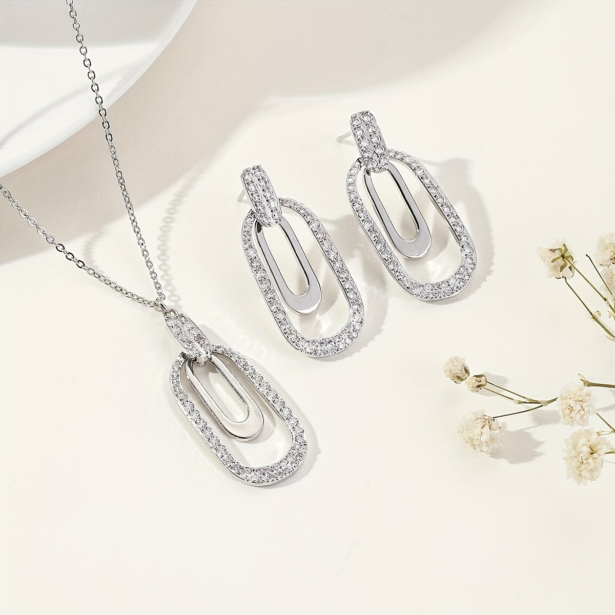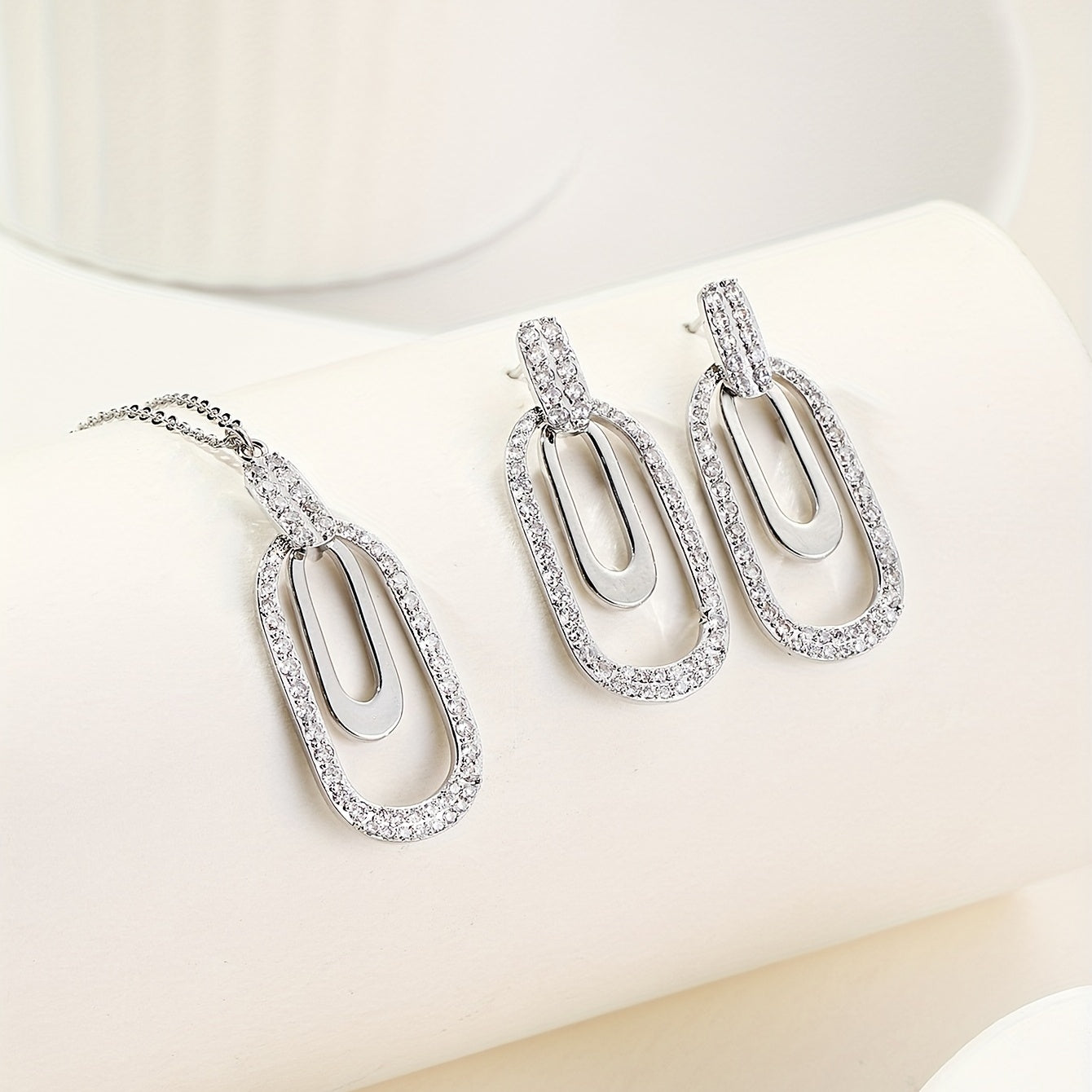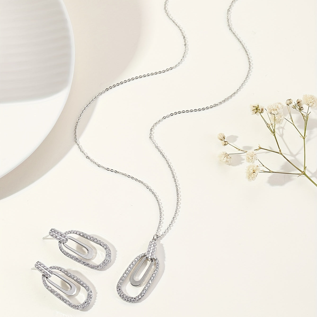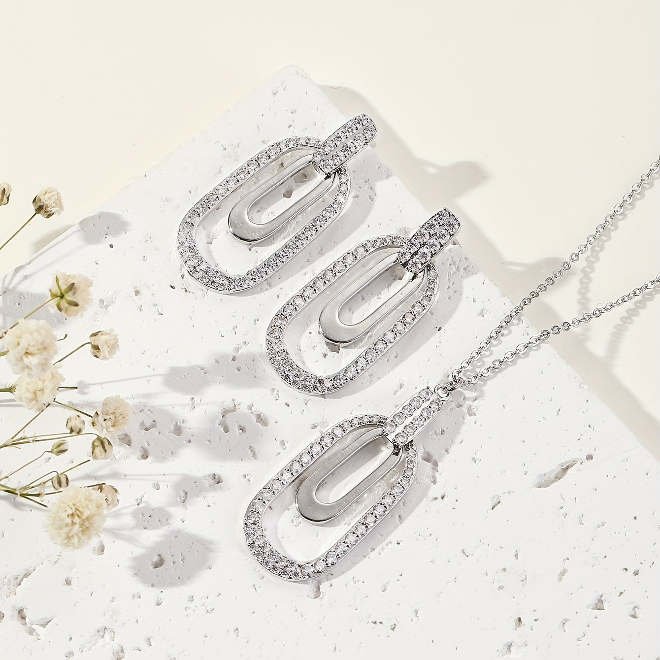 This stunning jewelry set includes 3pcs earrings and a necklace. Silver plated with shining zircon inlaid, perfect for parties or daily wear.