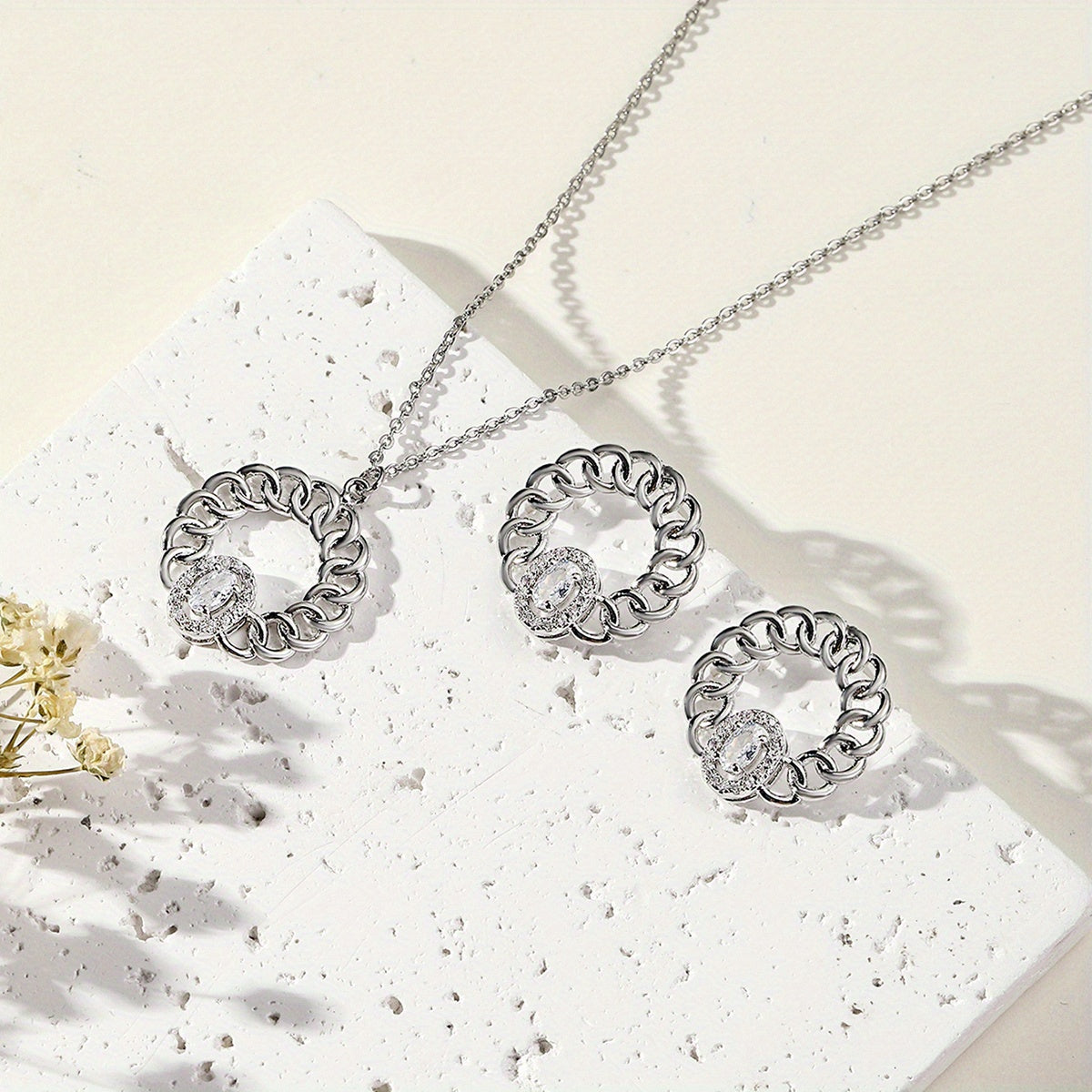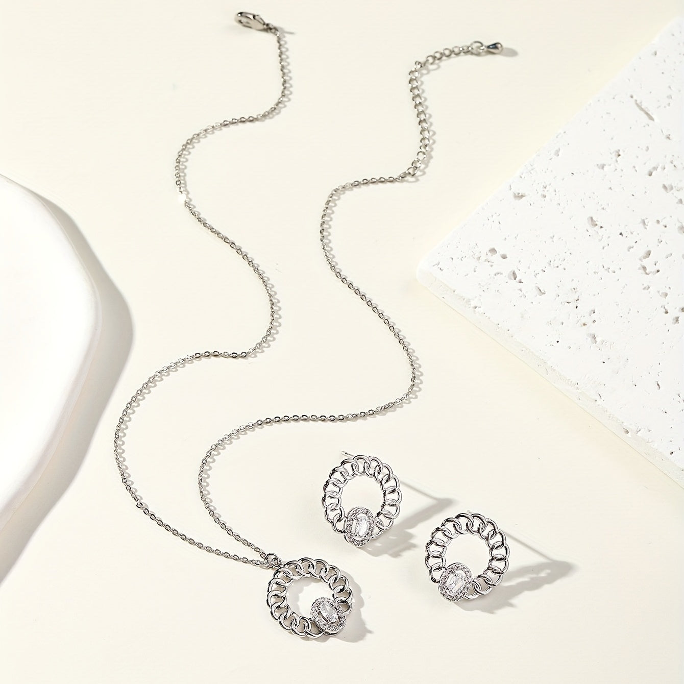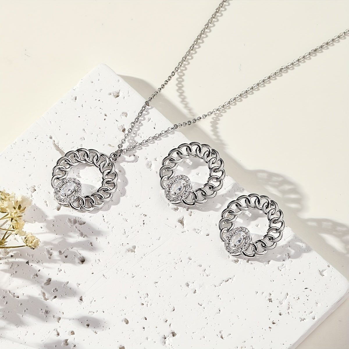 This elegant jewelry set includes 3 earrings and a necklace, all silver plated and inlaid with shining zircon stones. Perfect for adding a touch of glamour to your daily outfits or enhancing your party look.