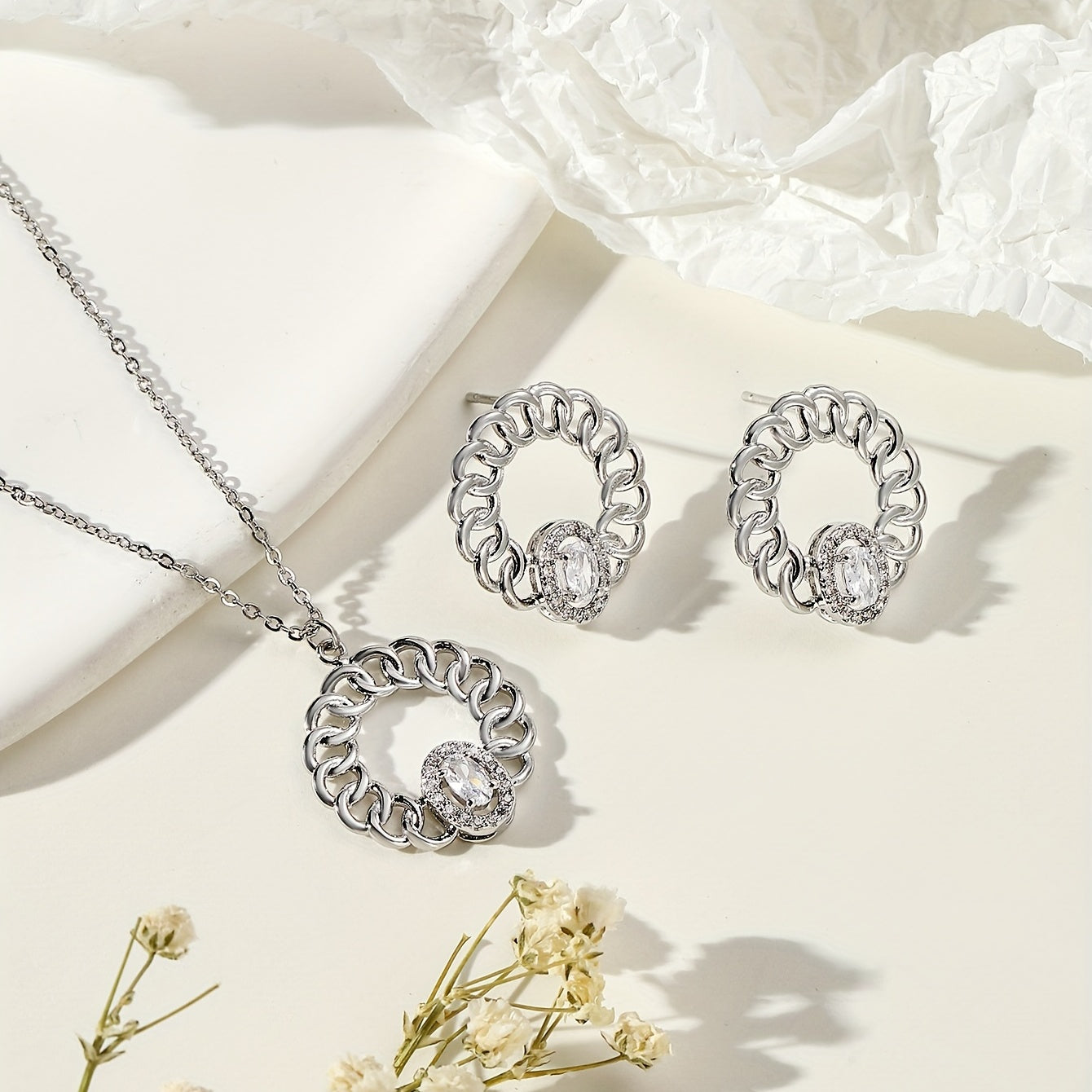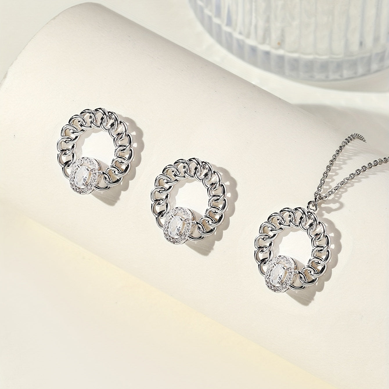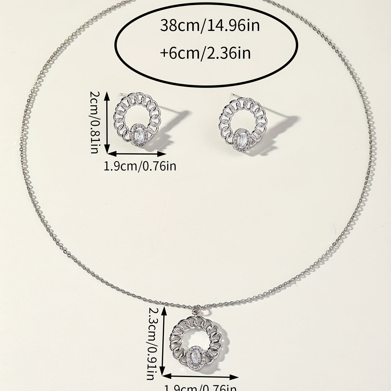 This elegant jewelry set includes 3 earrings and a necklace, all silver plated and inlaid with shining zircon stones. Perfect for adding a touch of glamour to your daily outfits or enhancing your party look.