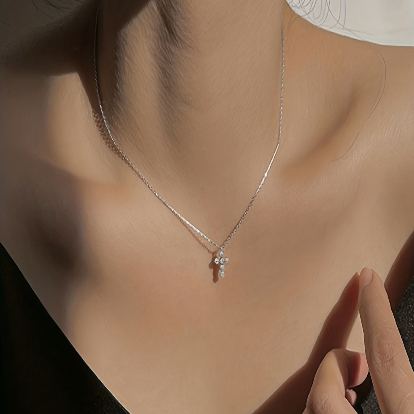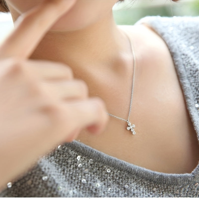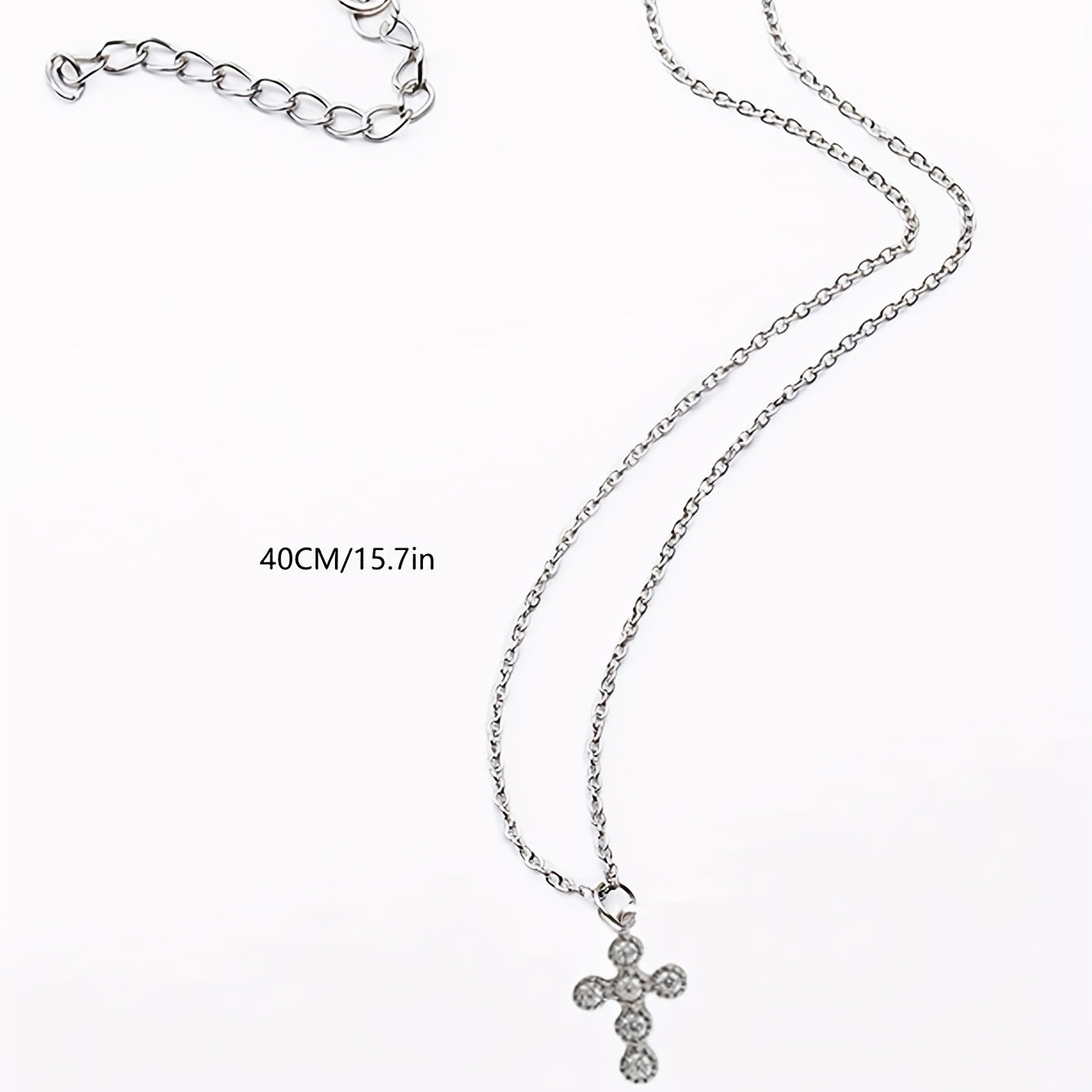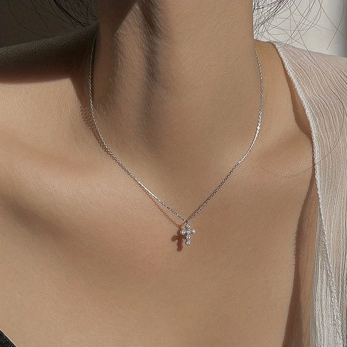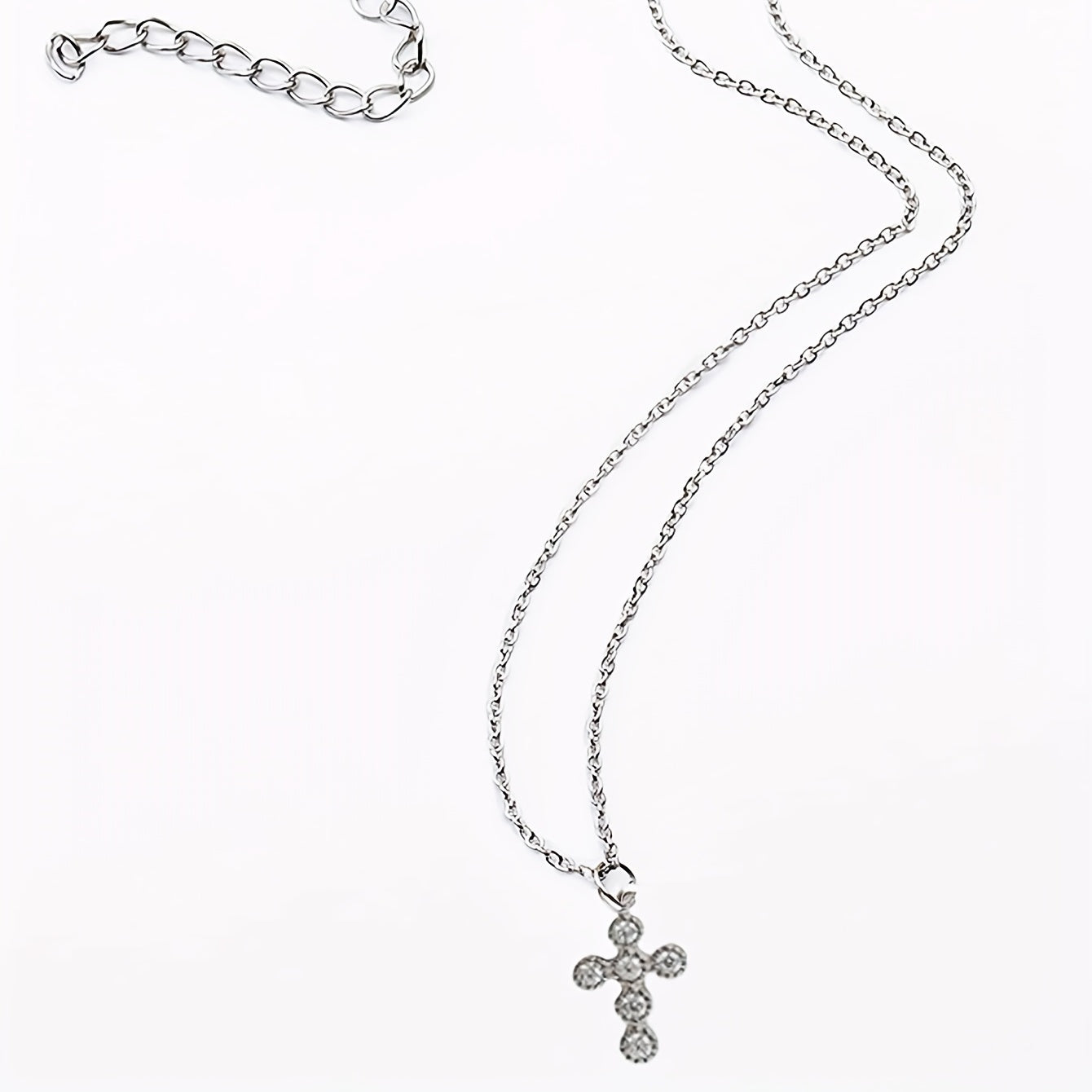 Express your faith with this elegant pendant necklace featuring a silvery cross with inlaid rhinestones. Perfect for daily wear or special occasions.