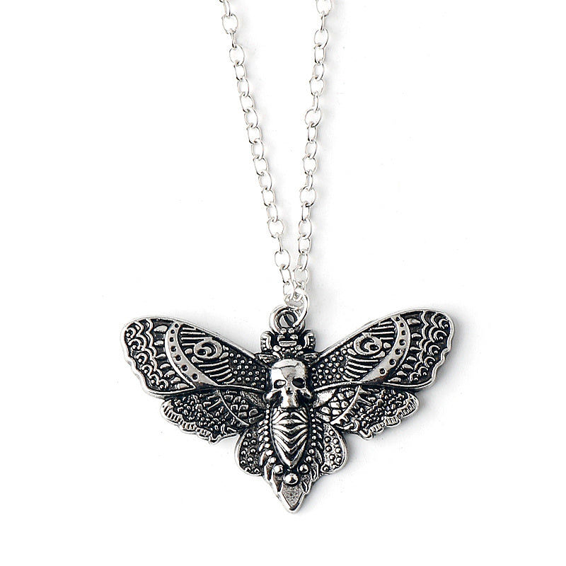 Skull Moth Pendant Necklace Punk Style Jewelry Men