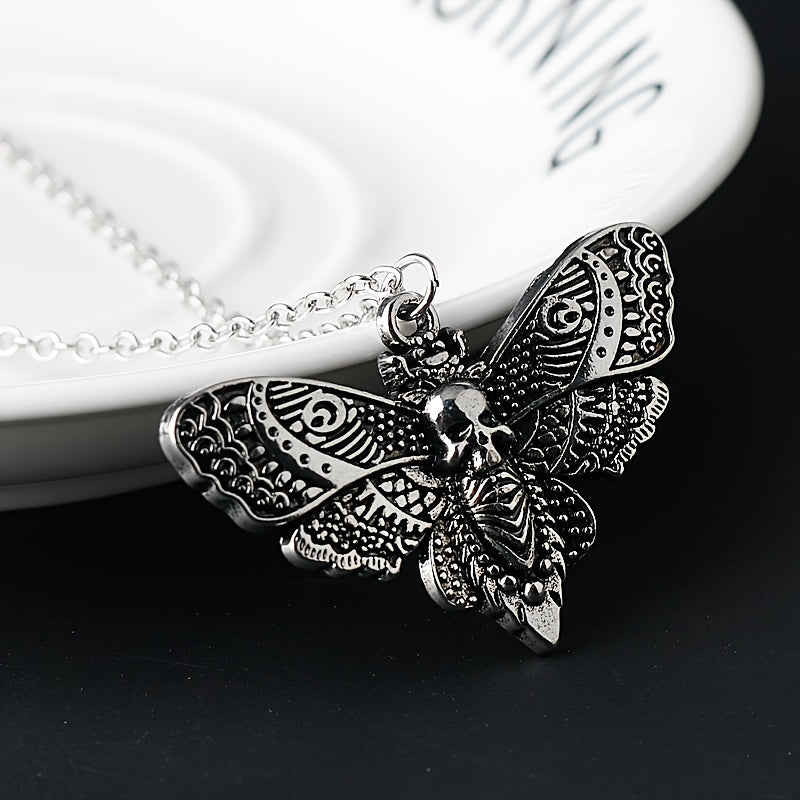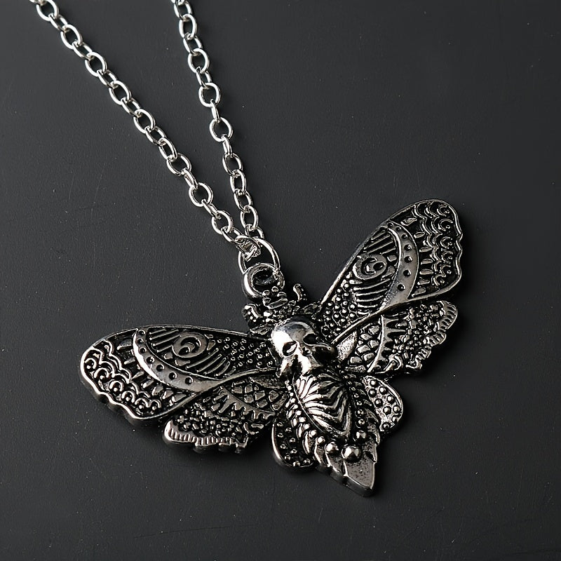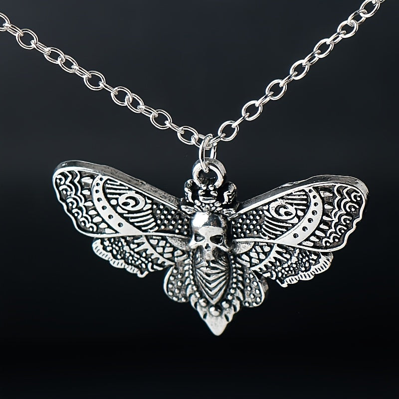 Embrace the retro punk style with this skull moth pendant necklace designed for men. Make a bold statement with this edgy accessory.