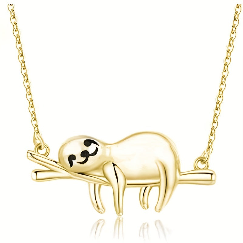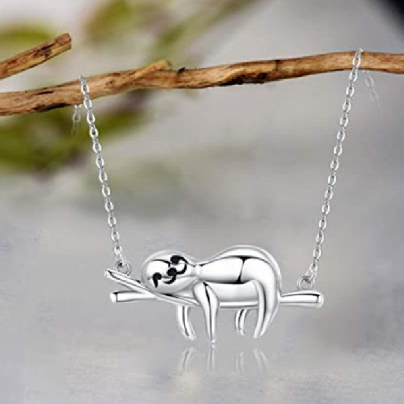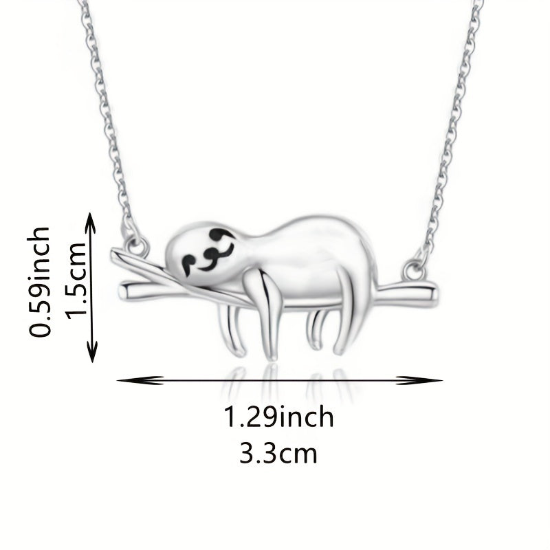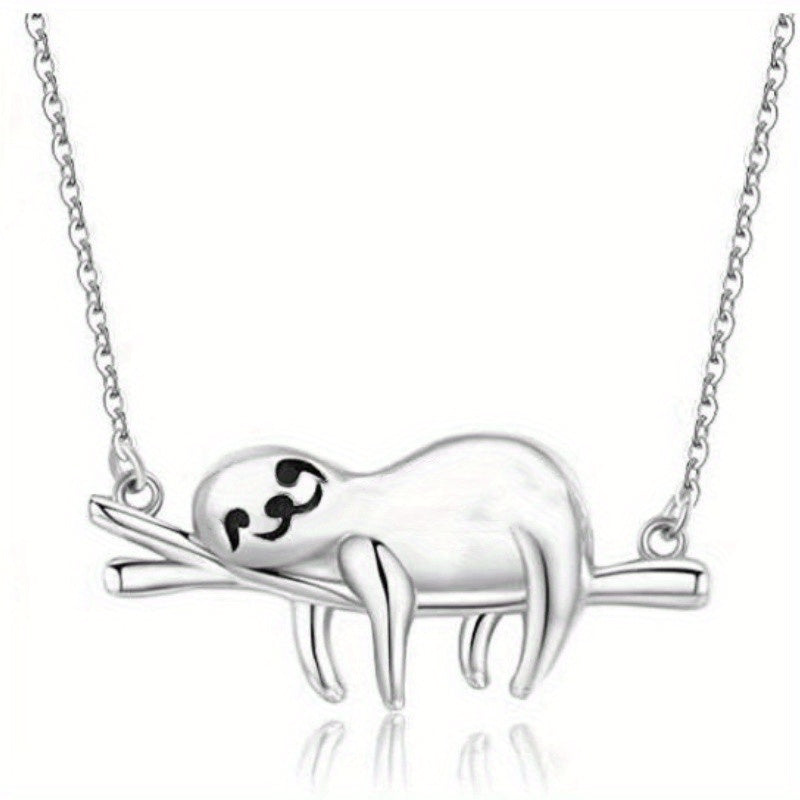 This adorable sloth necklace features a horizontal branch pendant design. It is a charming piece of casual jewelry suitable for any sloth lover. Makes a great gift!