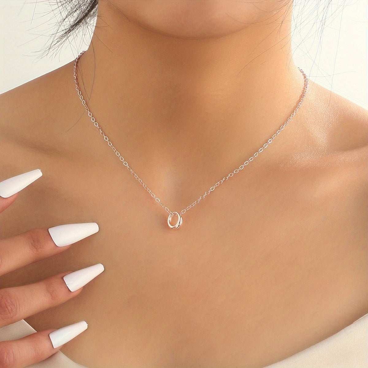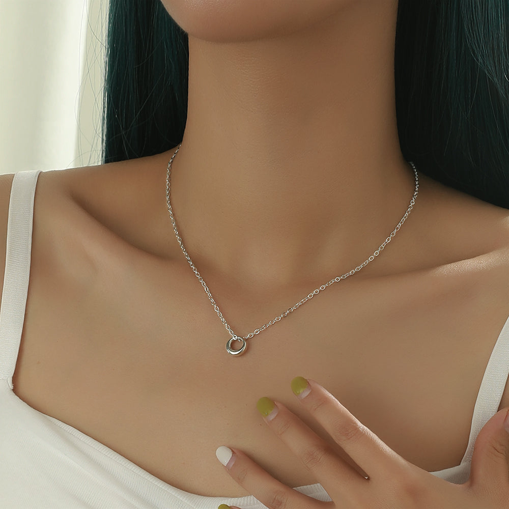 Small Ring Pendant Necklace Silver Alloy Elegant Women Girls