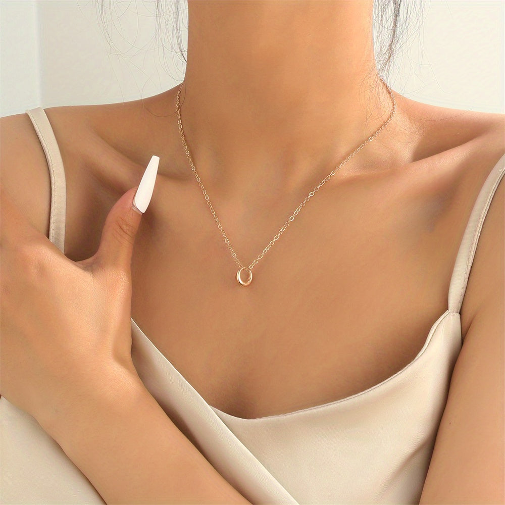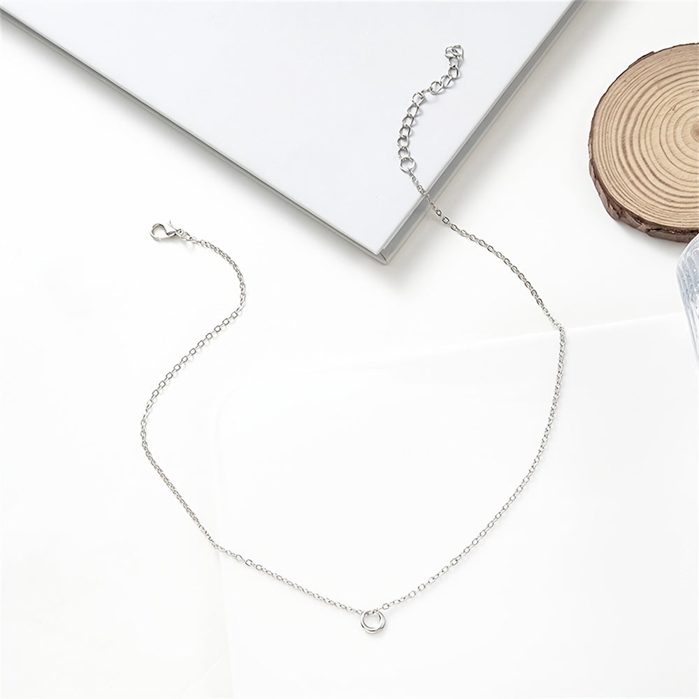 This classic pendant necklace features a small ring design in silver alloy, perfect for daily wear. Ideal for women, ladies, and girls.