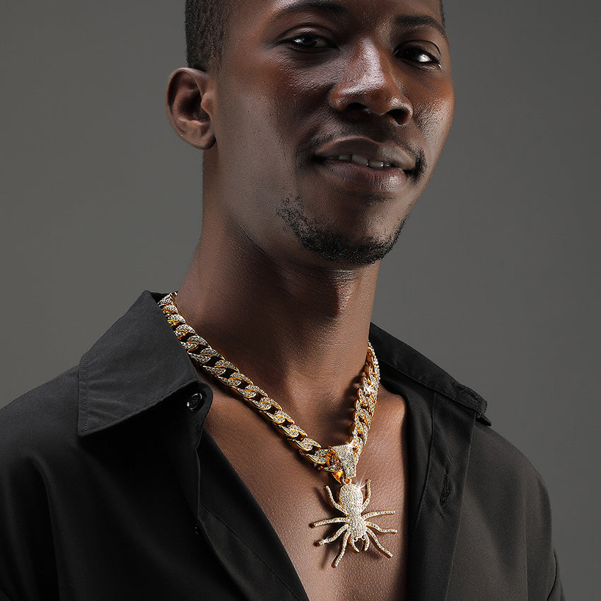 Enhance your style with this stylish spider pendant necklace featuring a durable cuban chain.