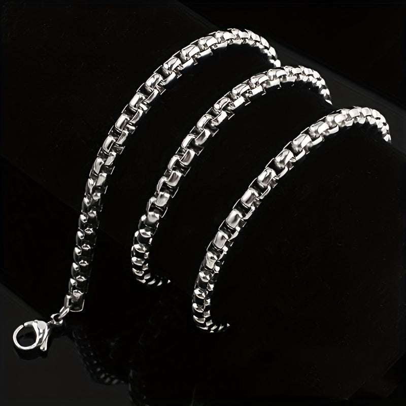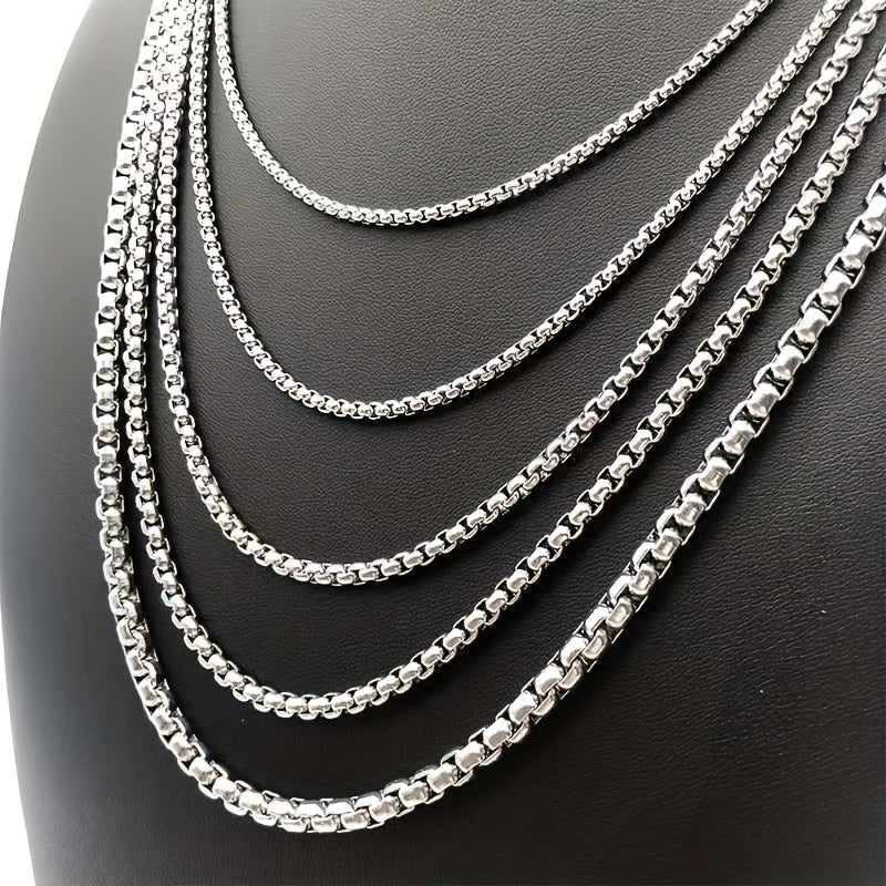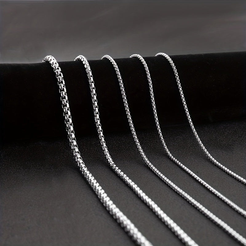 Square Pearl Necklace Stainless Steel Men Women Jewelry Accessory